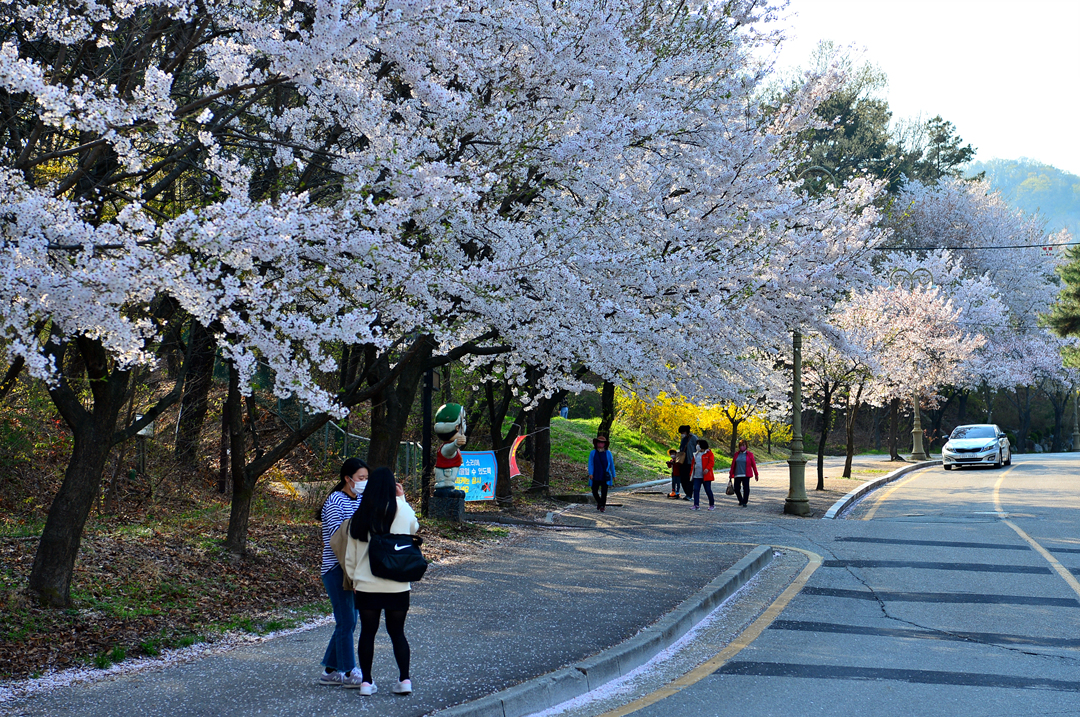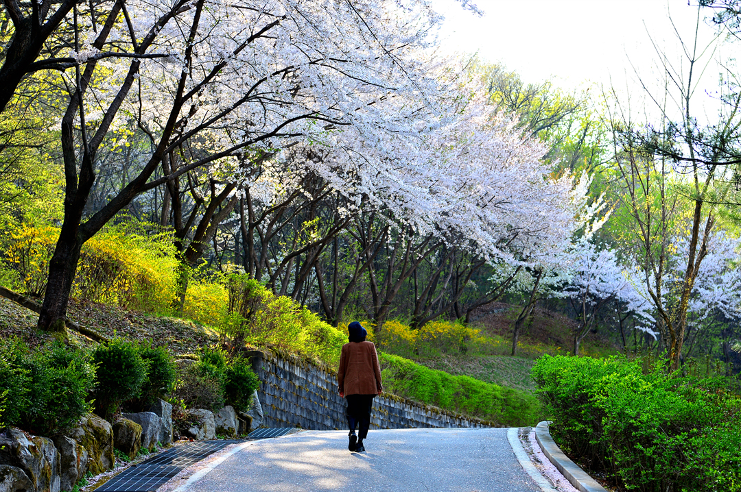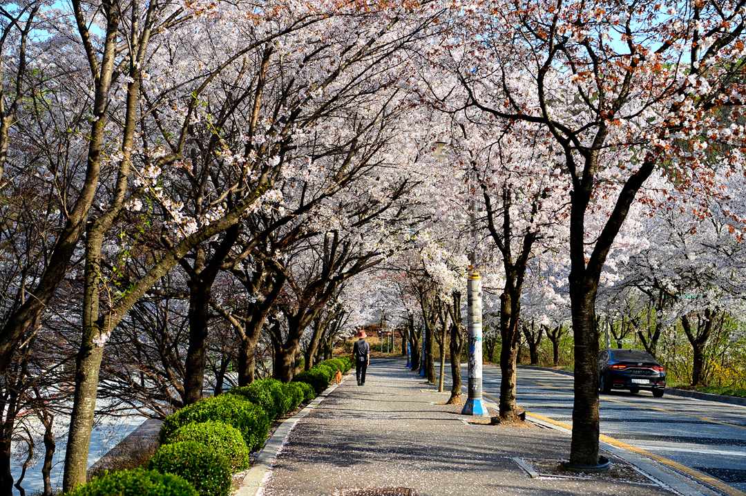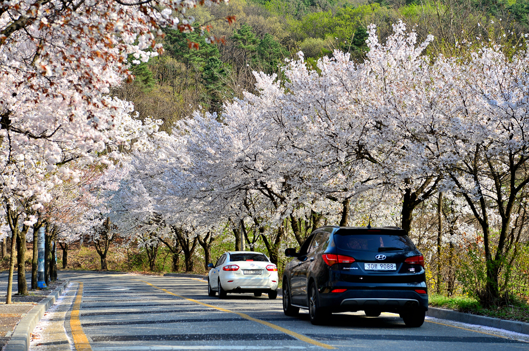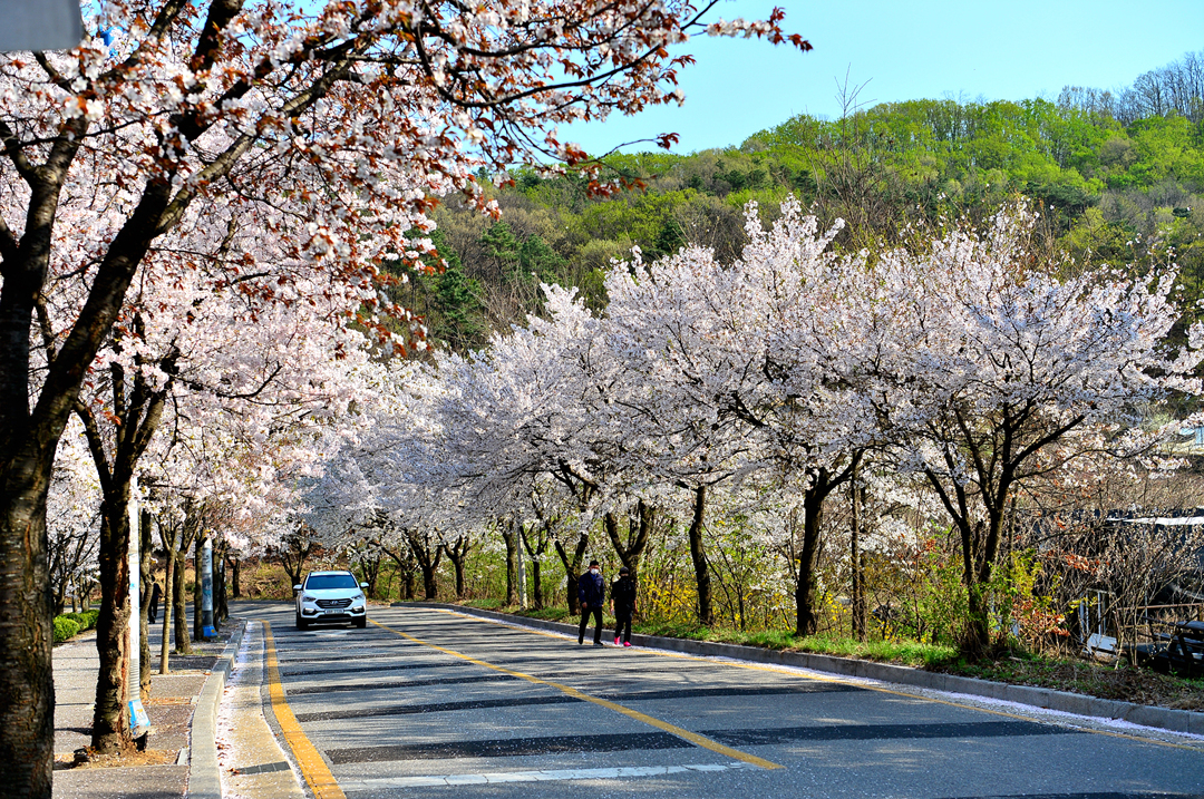 도로 양옆의 가로수는 온통 벚나무로 만개한 화사한 꽃길을 만들고 있었다.