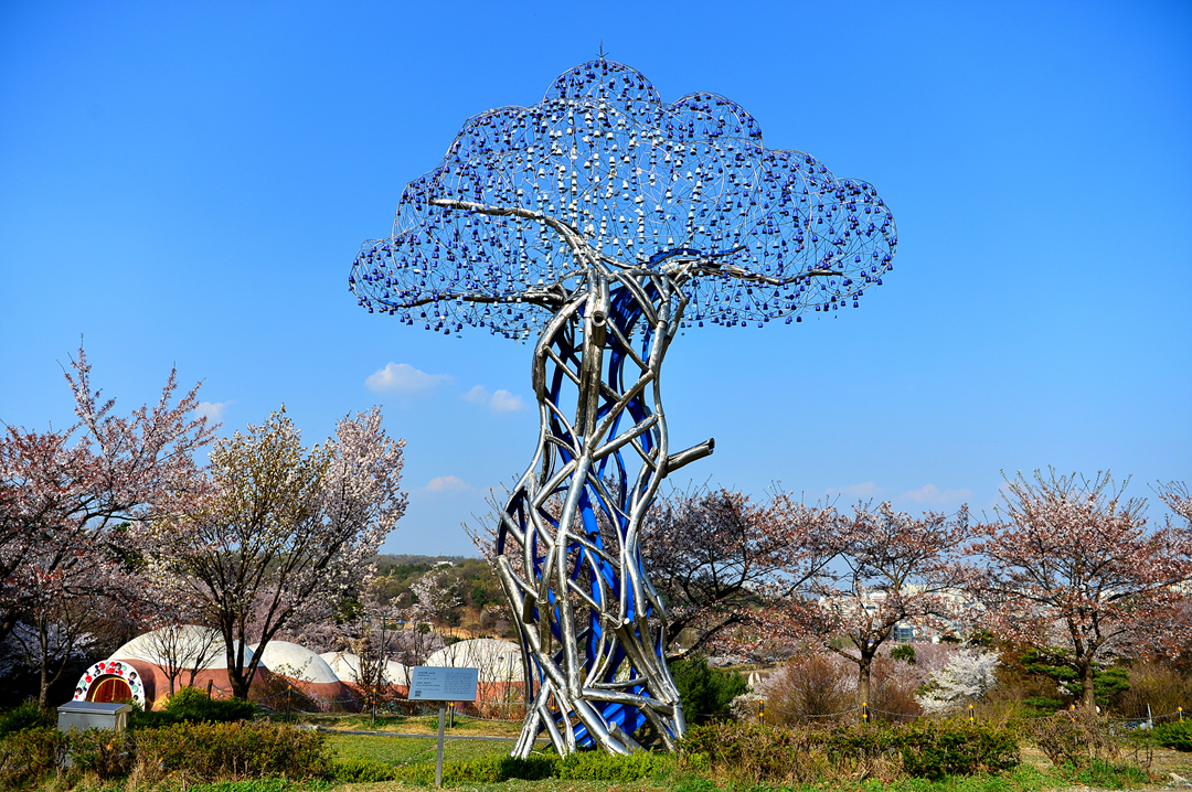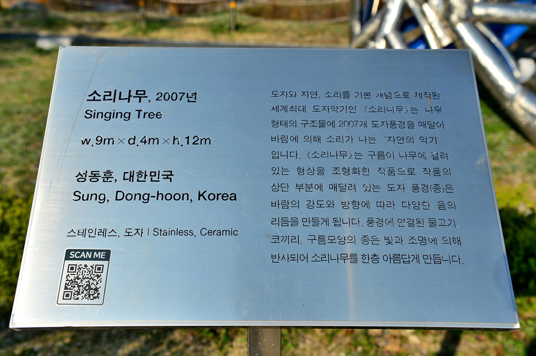 소리나무라는 조형물인데 설치 연도와 같은 개수의 도자 풍경을 달아놓은 거란다.