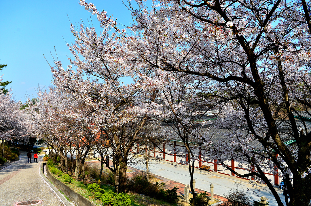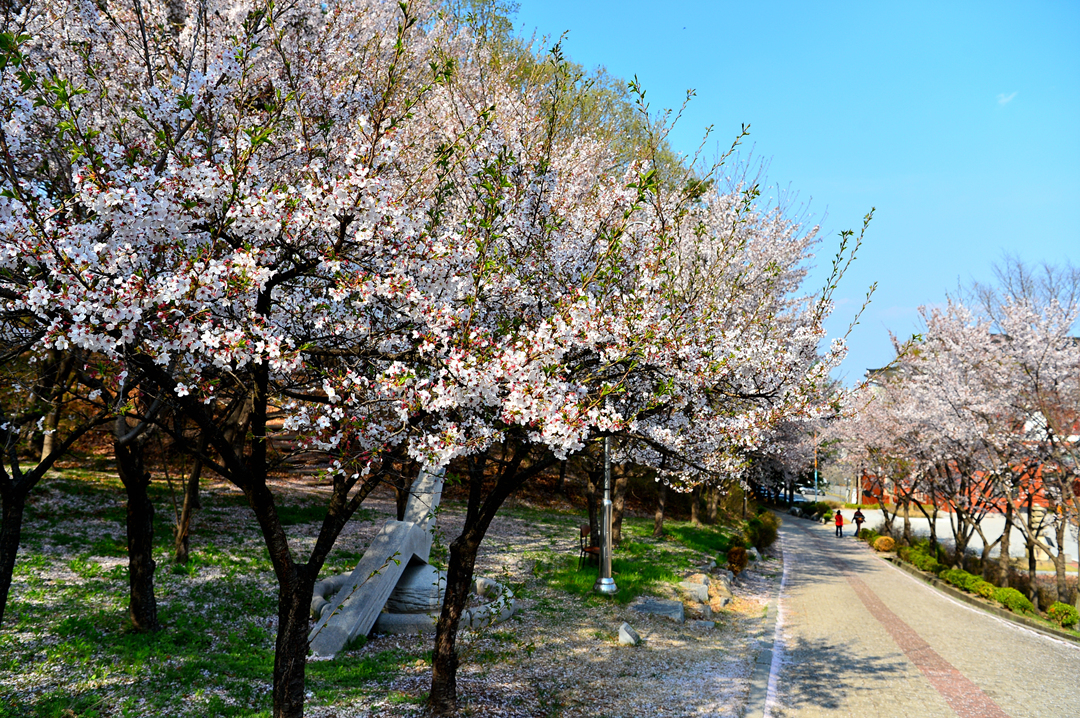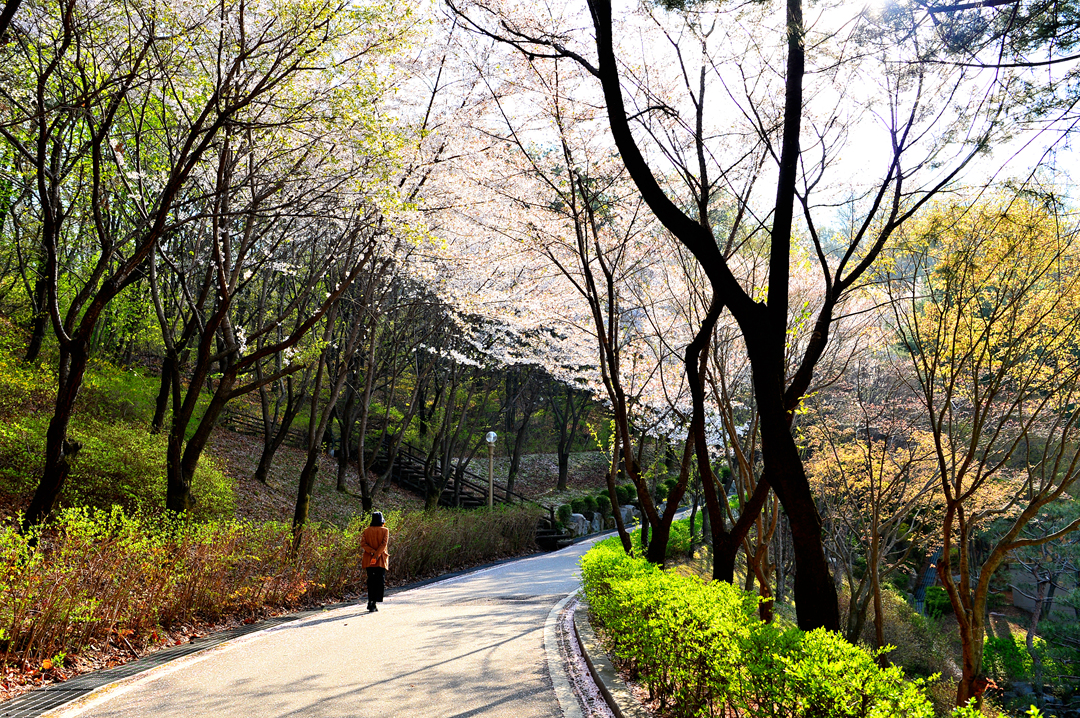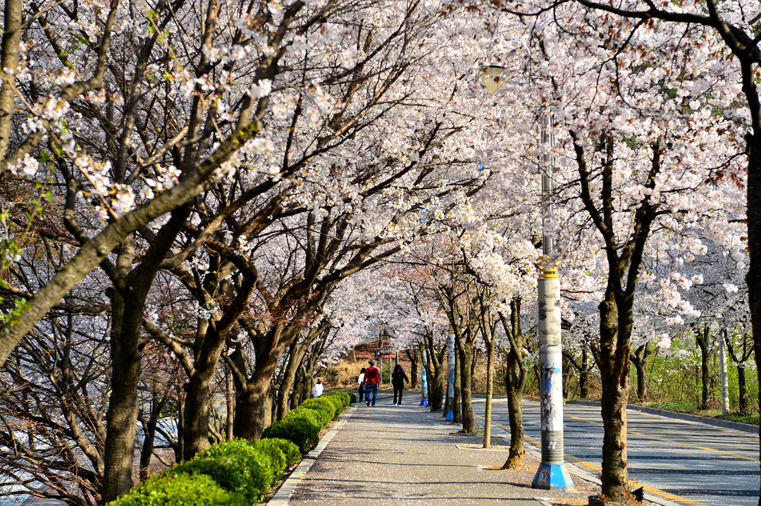 길 옆으로 나란히 늘어선 벚꽃나무들이 운치 있다.
