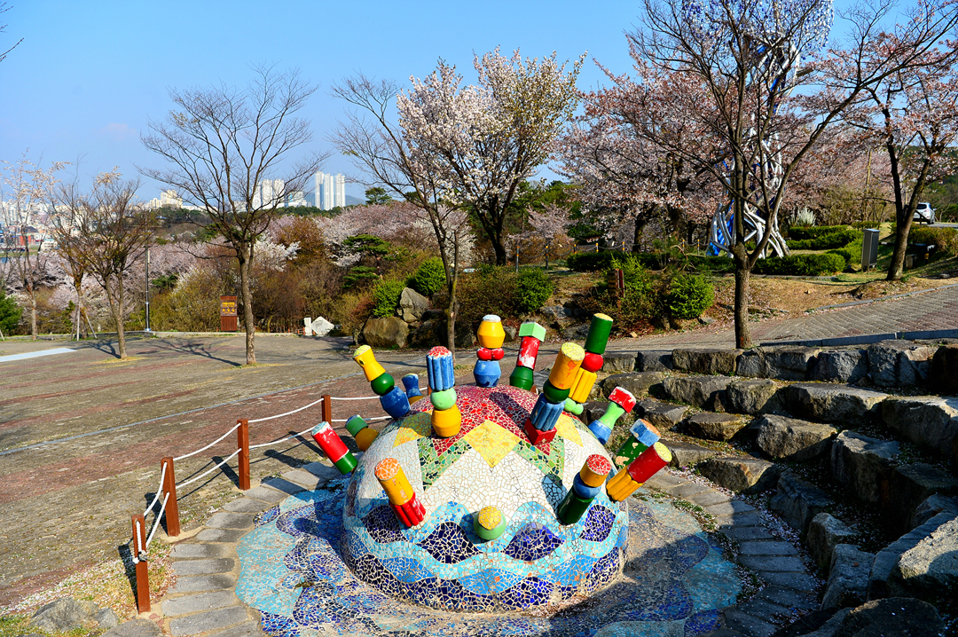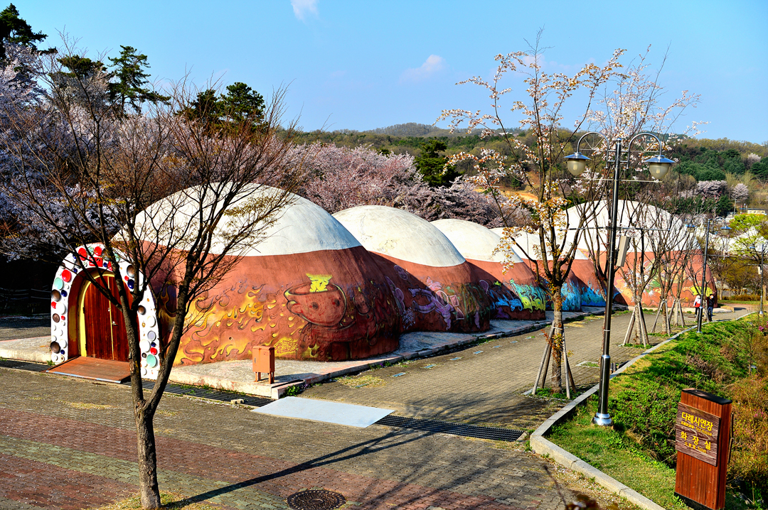 세계도자센터 건물 뒤쪽의 공간인데 이곳도 벚꽃나무가 병풍처럼 둘러서 있다.