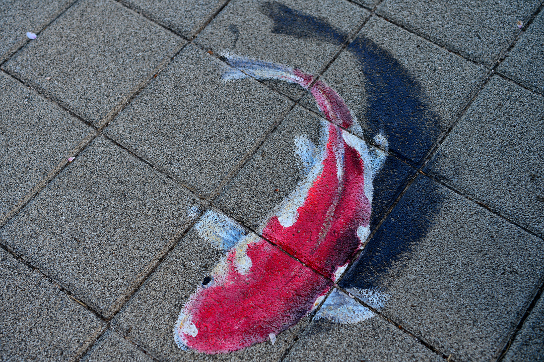 보도블록 위를 헤엄치는 빨간 금붕어도 있고