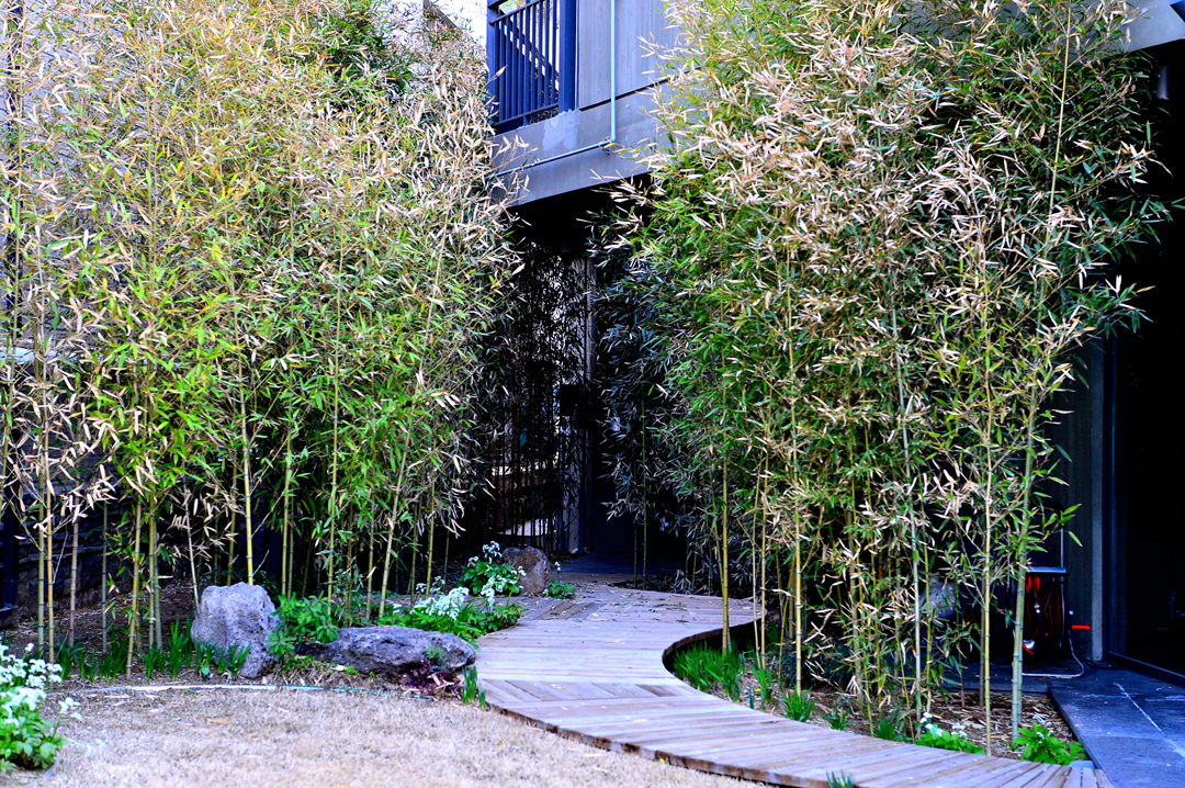 건물의 주출입구 부분에 대나무 숲을 조성하여 운치를 더해주는 모습도 보이고