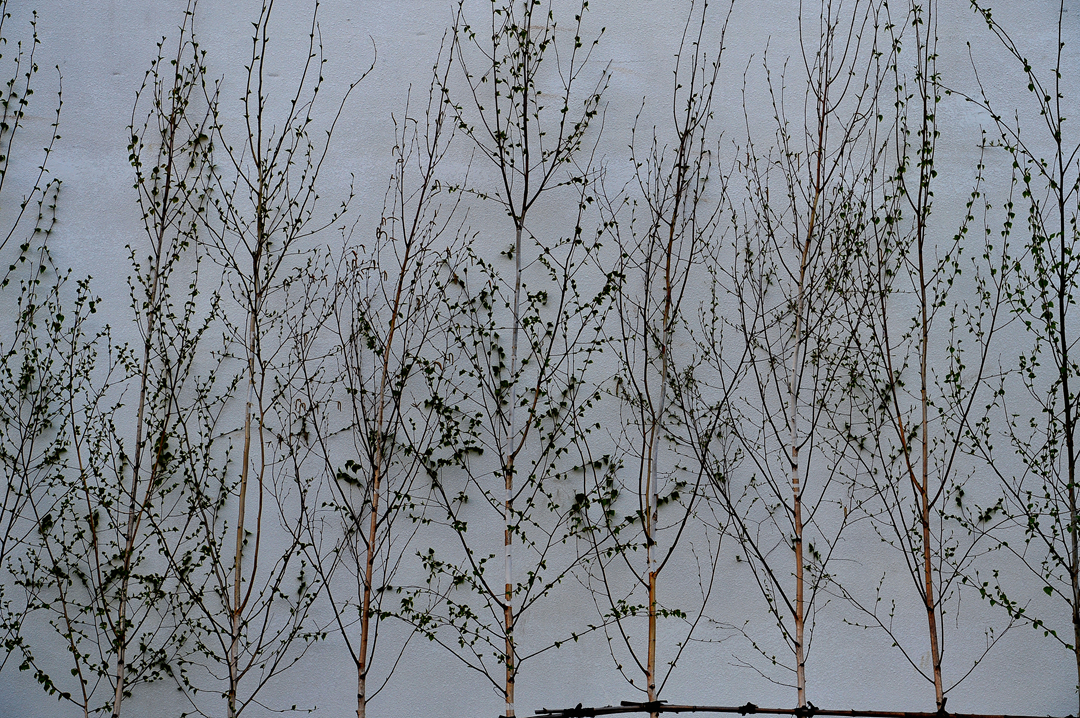 건물의 한쪽 벽면을 장식하고 있는 작은 나무들~