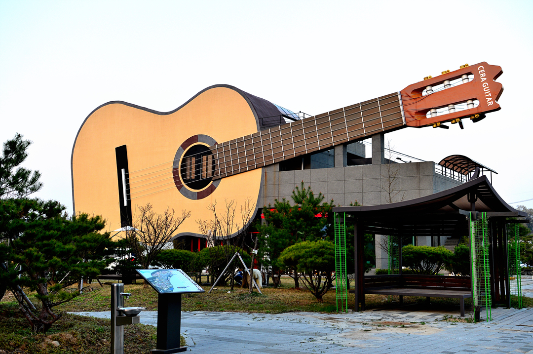 커다란 기타 조형물이 건물 외관의 대부분을 차지하는 이 건물에서는 기타에 관한 다양한 정보와 구매,