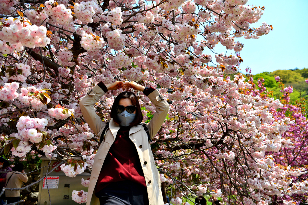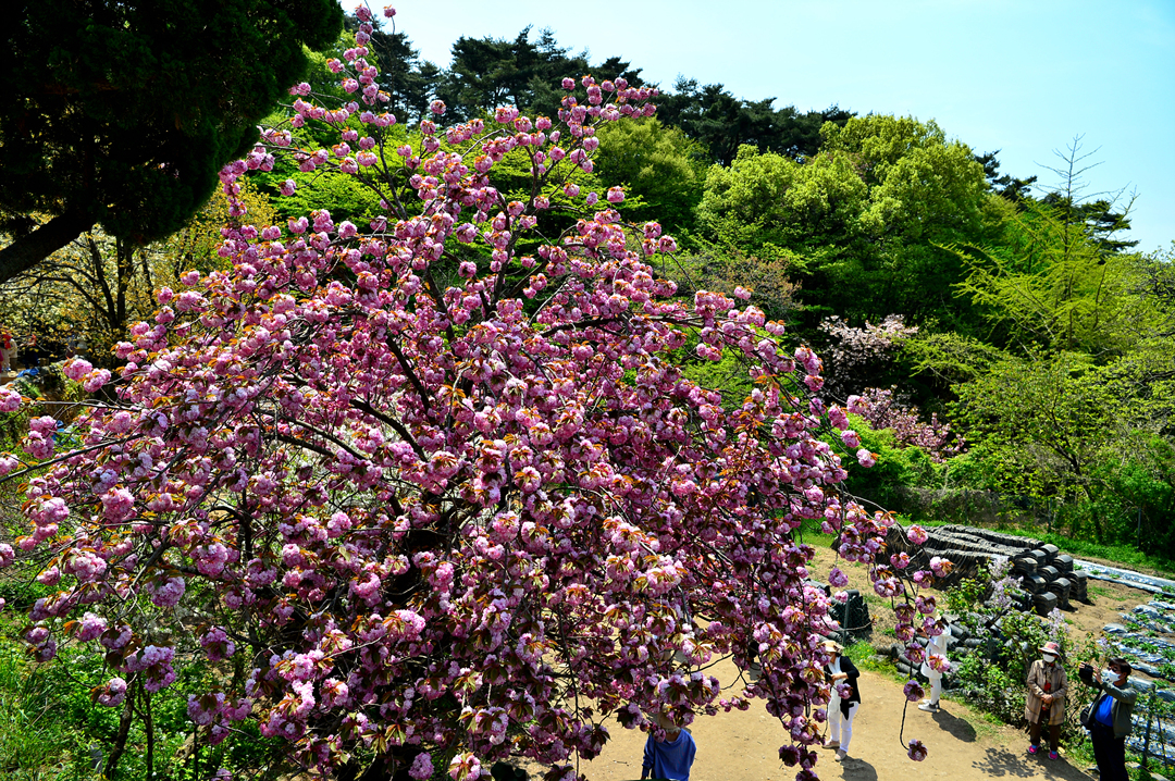 분홍빛 탐스러운 겹벚꽃이 나들이 기분을 한층 업시켜 준다.