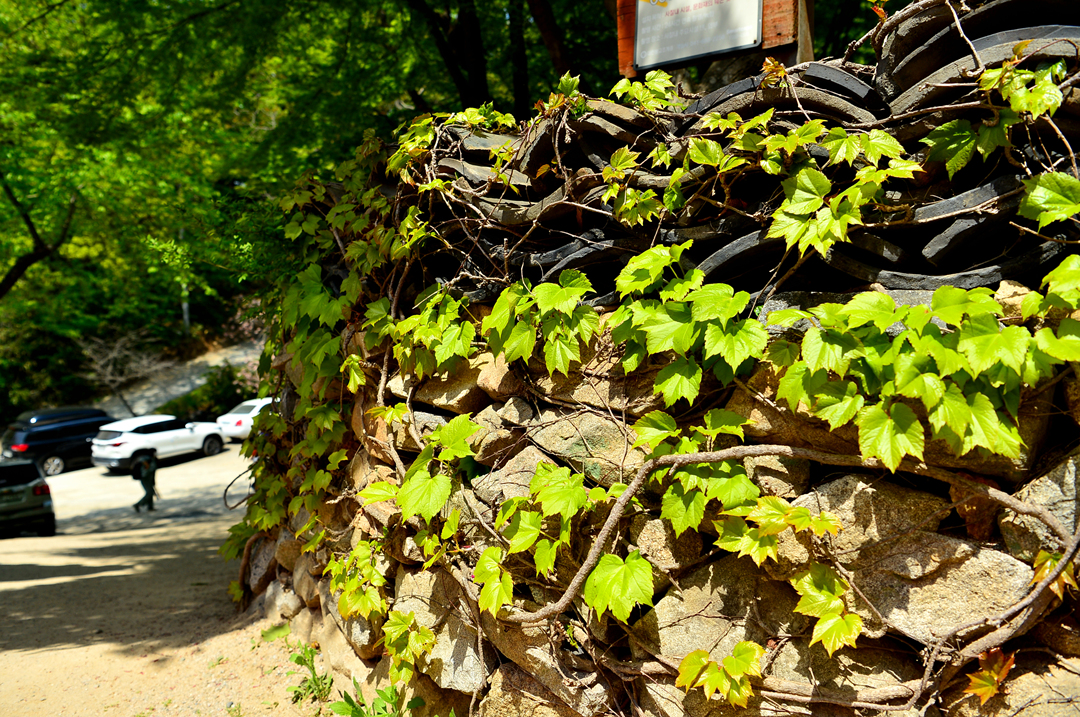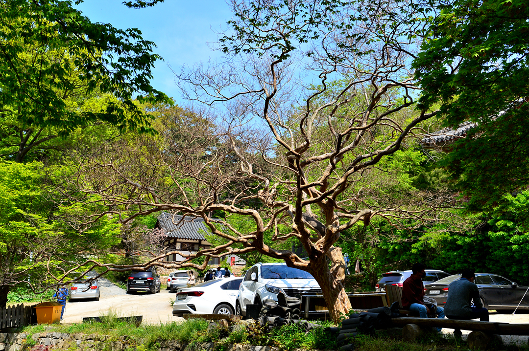 아직 움트지 않은 배롱나무 주변의 차량들을 보니, 이 산사로 오르는 숲길이 생소했던 이유를 알 것만 같다.