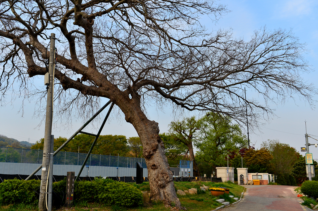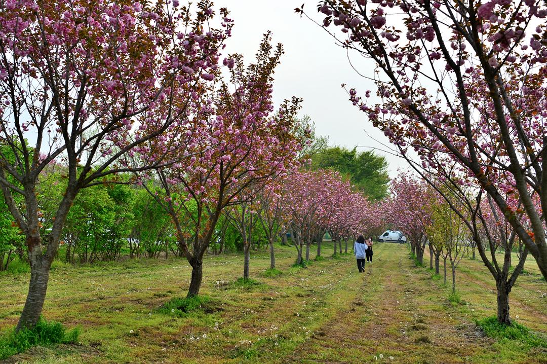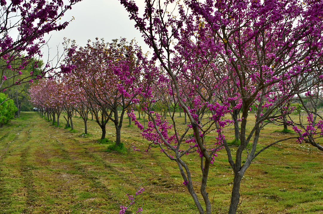 줄지어 심어놓은 겹벚꽃나무들이다.