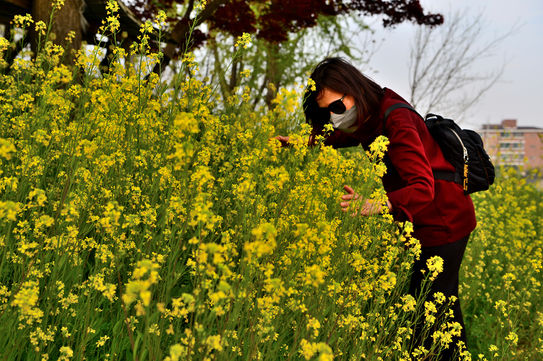성벽 옆에 아름답게 핀 유채꽃 모습이다.