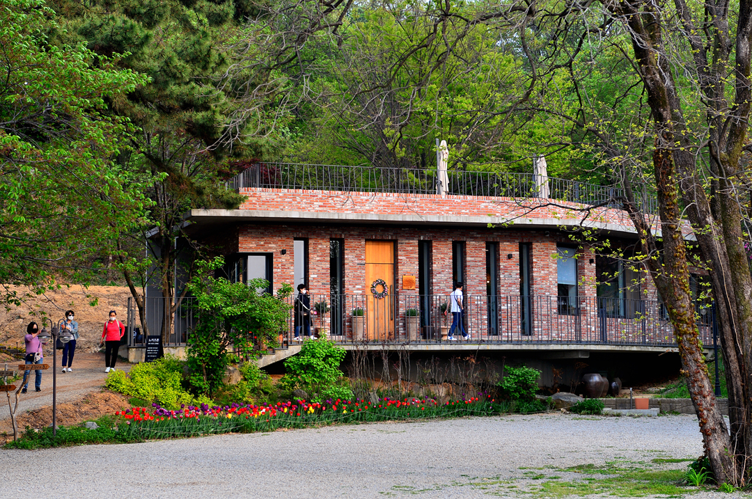 저 자그마한 건물이 이 카페의 주출입구 같은데~