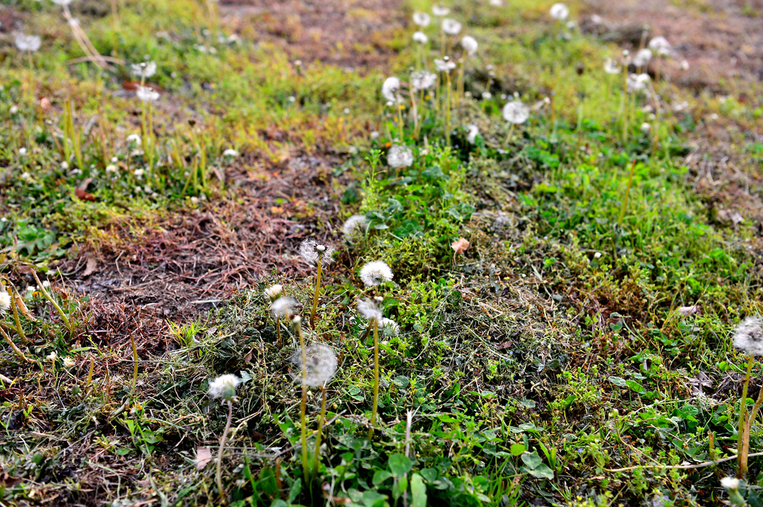 바닥에서는 민들레 꽃씨가 먼 길을 떠날 채비를 하고 있다.