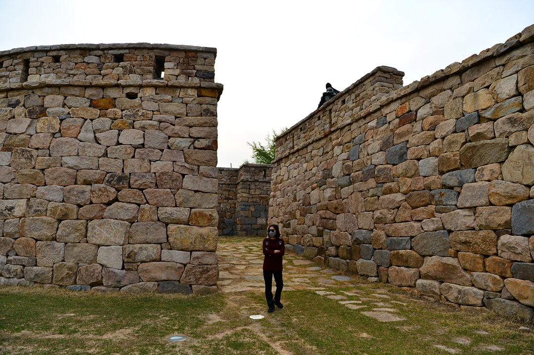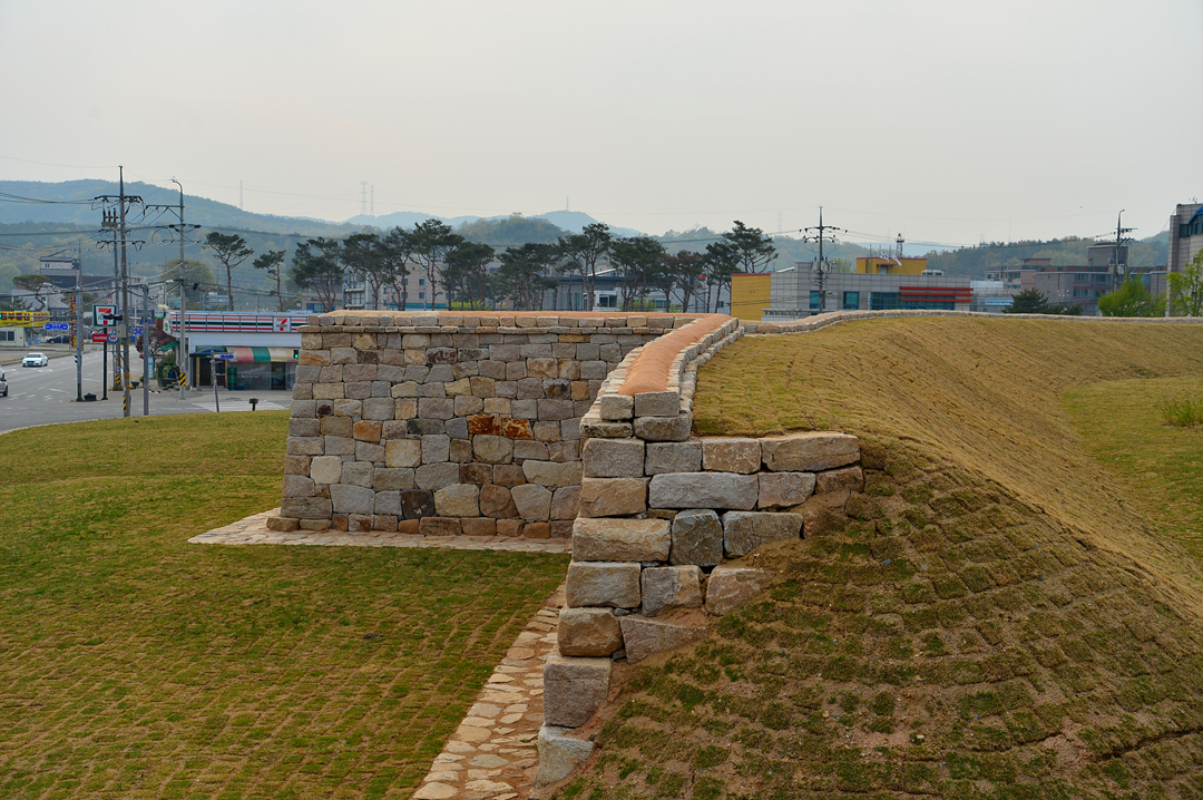 성문 밖 외성과 새로이 복원공사 중인 성벽 모습이다.