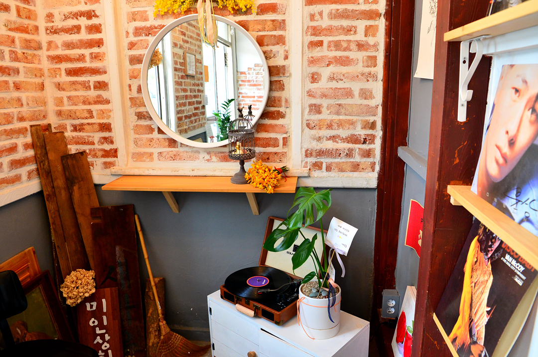 볼거리로 내어놓은 전시물들도 좁은 카페의 일부로 존재하고 있다.