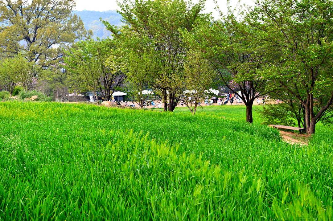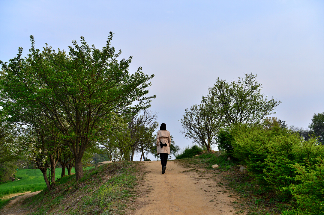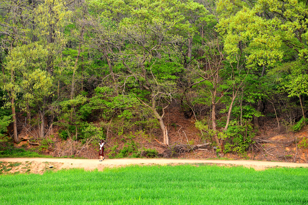 보리밭 주변의 산책로에서도 청춘들의 모습이 보이고~