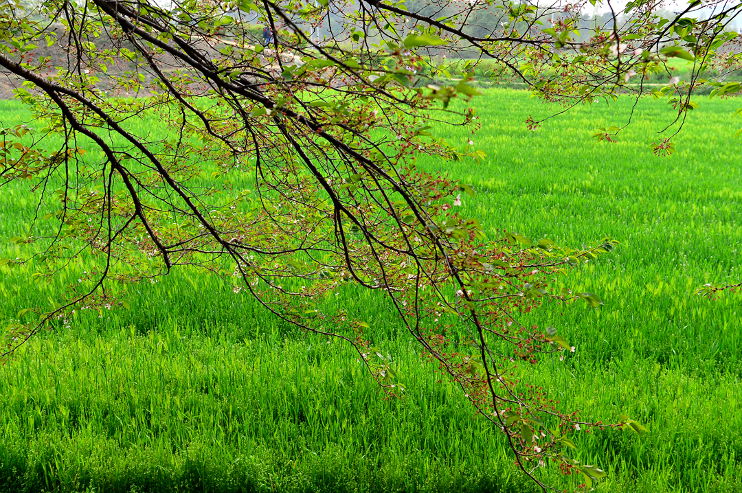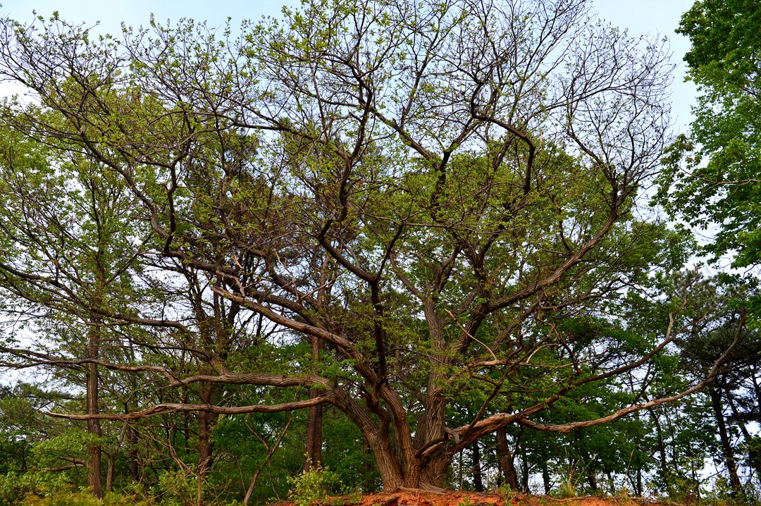 왕성하게 가지를 내어 놓은 고목의 가지들에서는 연한 새순이 나오기 시작한다.