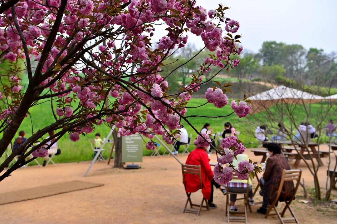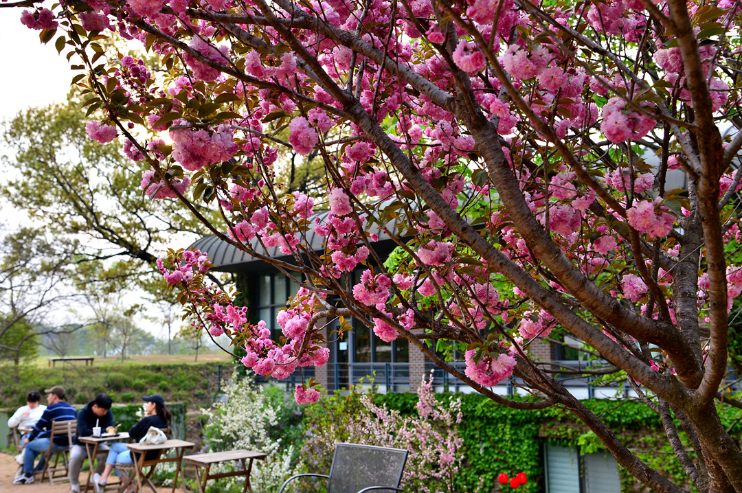 이곳에도 겹벚꽃이 풍성한 꽃송이를 탐스럽게 달고 있다.