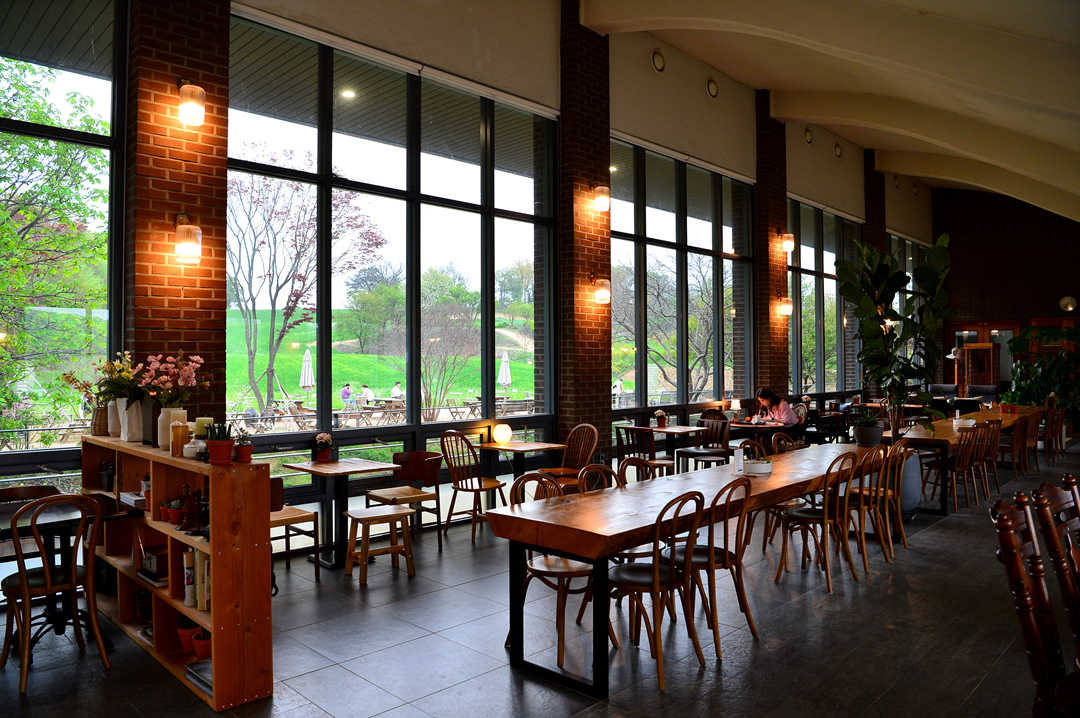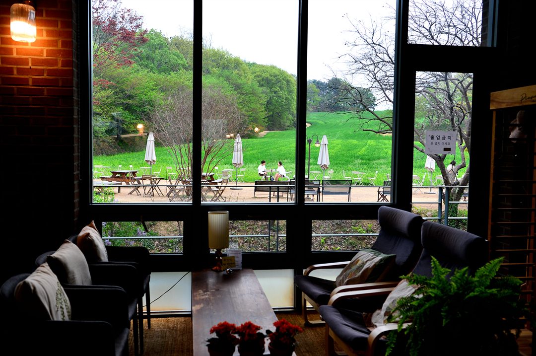 카페 안에서 바라본 보리밭 방향 모습이다.