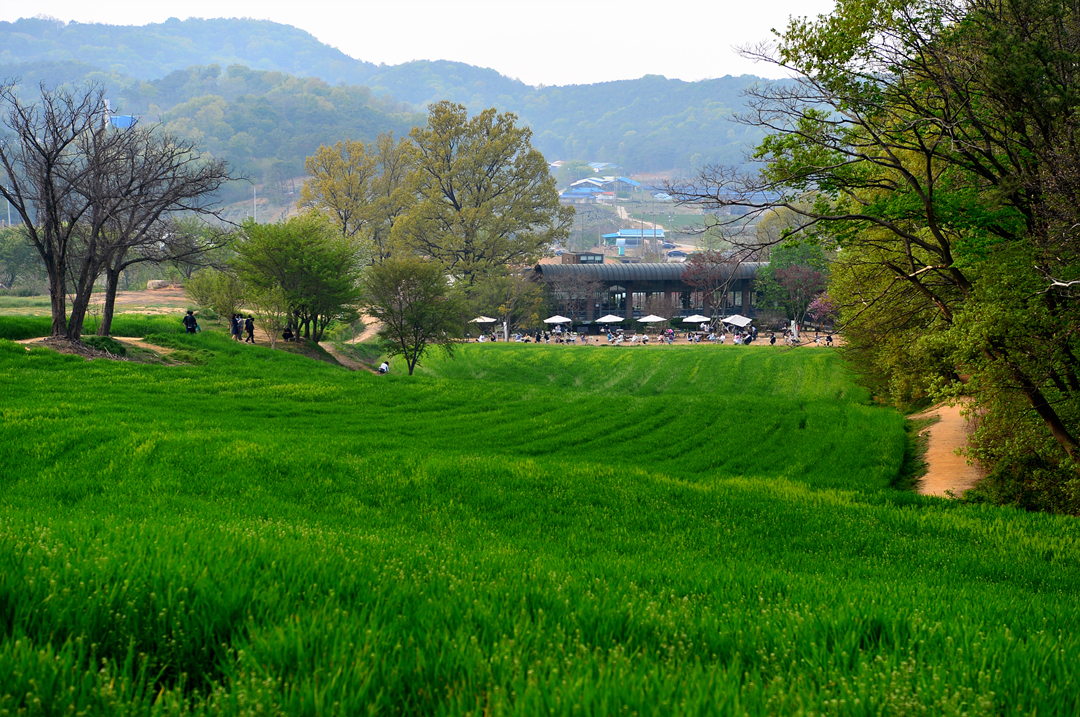 보리밭 끝에서 내려다본 카페 방향 모습이다.