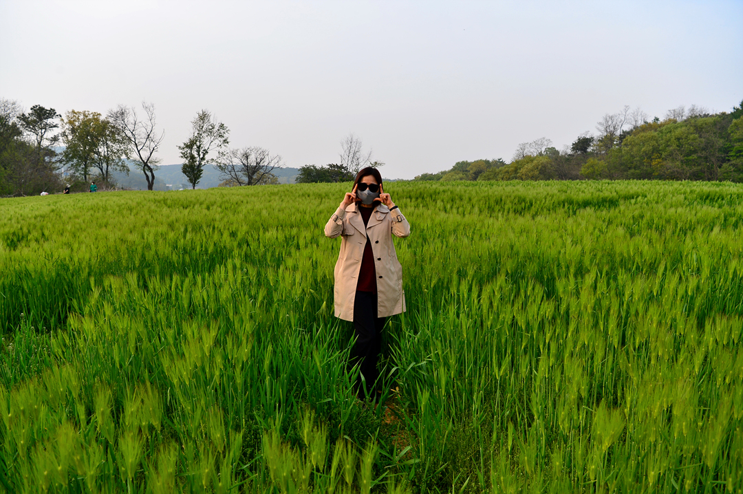 보리밭을 배경으로 추억을 남기는 모습들도 보인다.