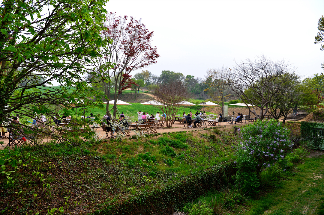 보리밭 앞에는 자그마한 티테이블이 줄지어 늘어서 있고,