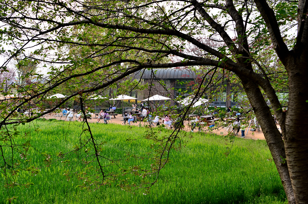 길게 가지를 늘어드린 벚나무에 꽃들이 달렸을 때는 꽤나 멋있었겠다.