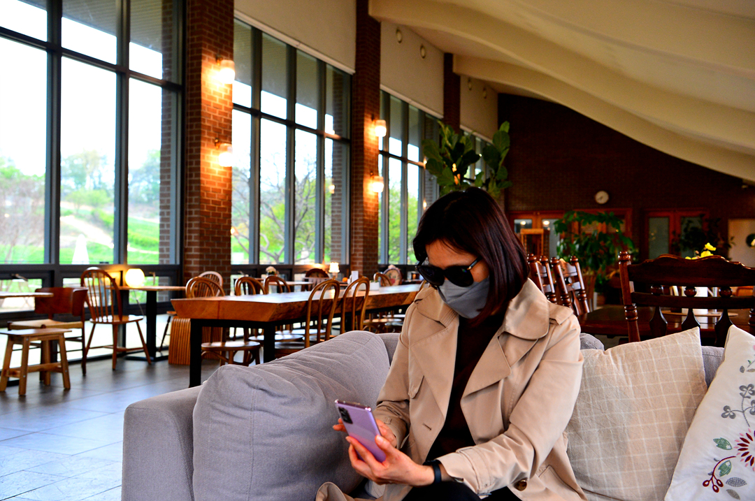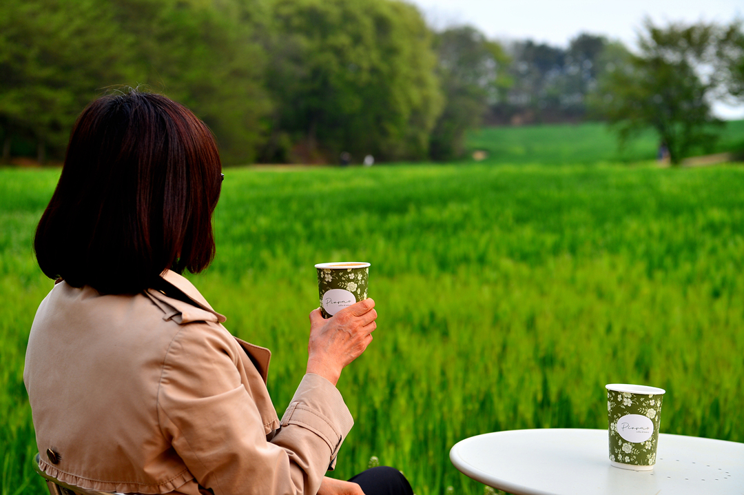 싱그러운 보리밭을 바라보며 커피를 즐기고~