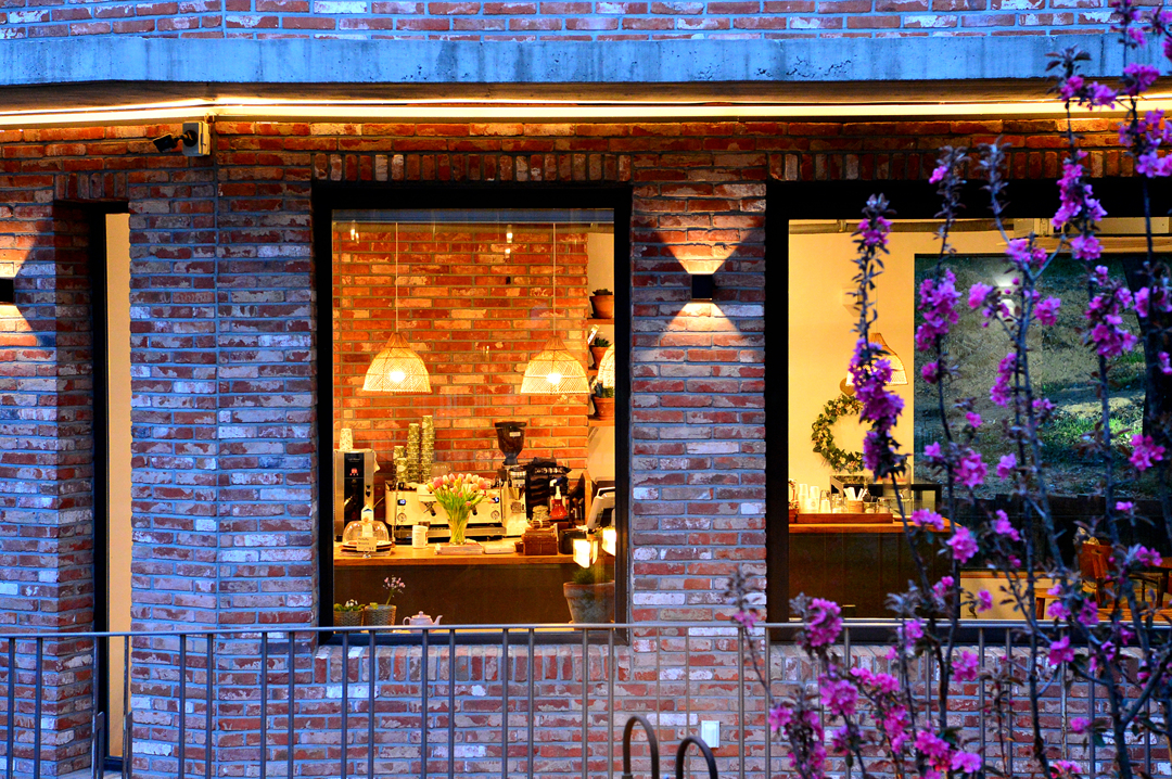 어느덧 카페 건물의 조명이 더욱 선명해지기 시작한다.