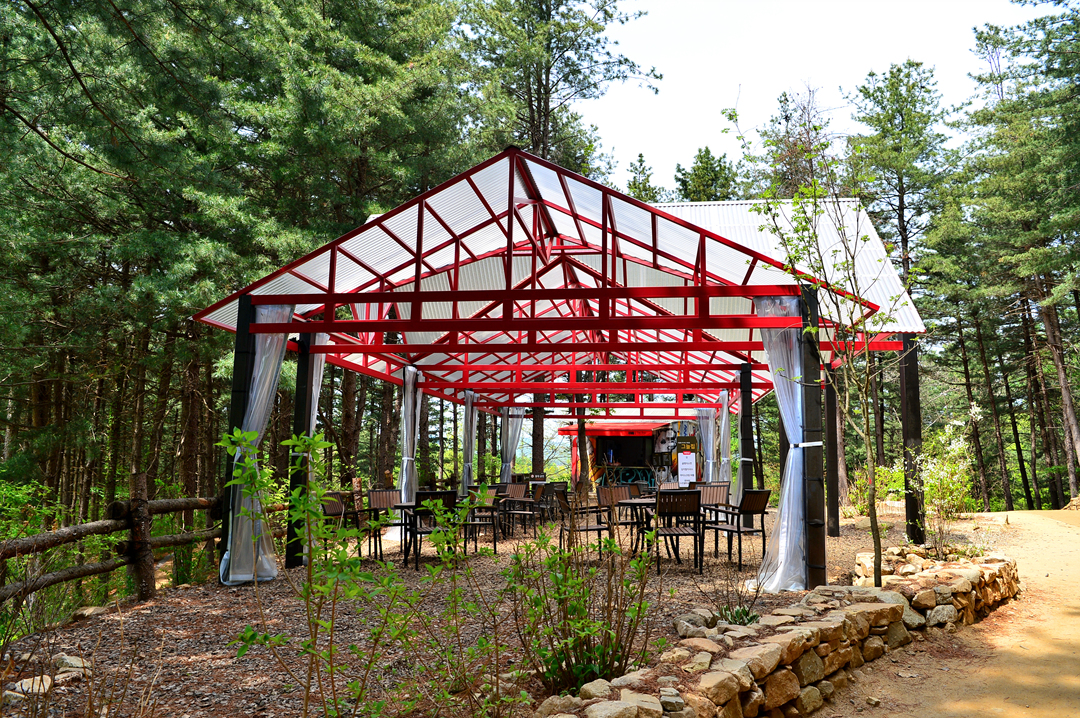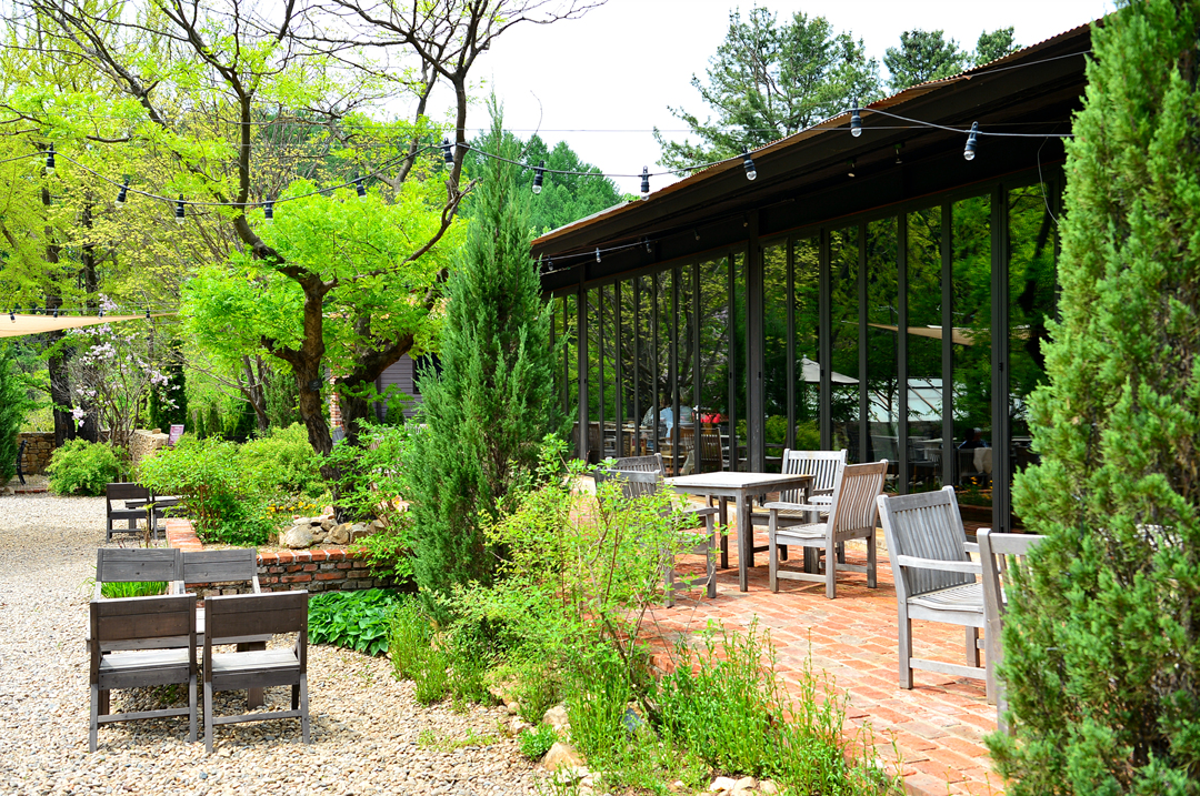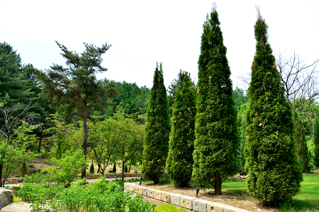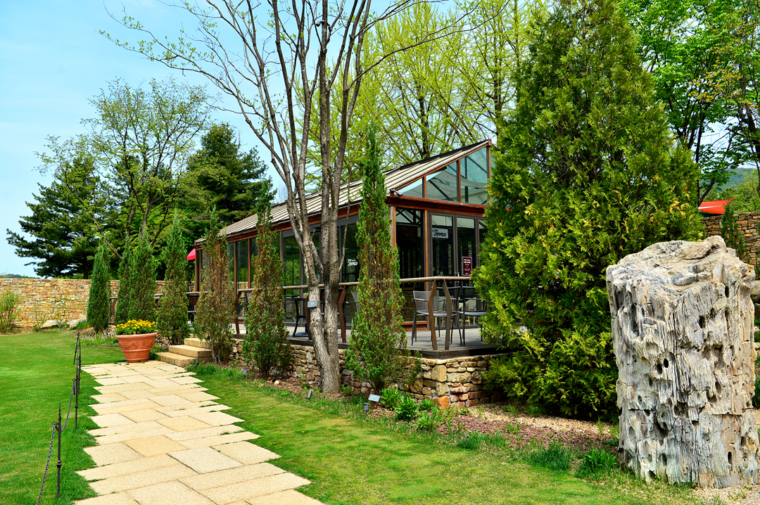 가든 주변에는 울창한 소나무와 잣나무 숲이 자리하고 있다.