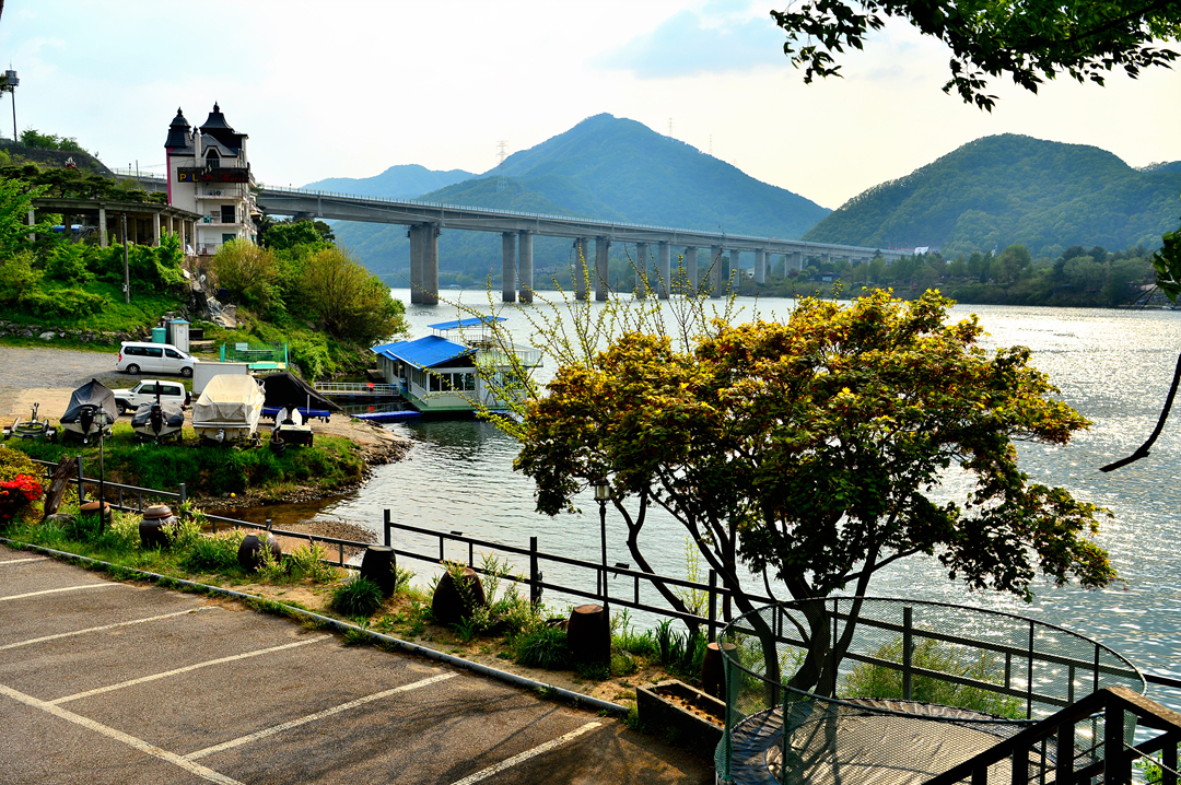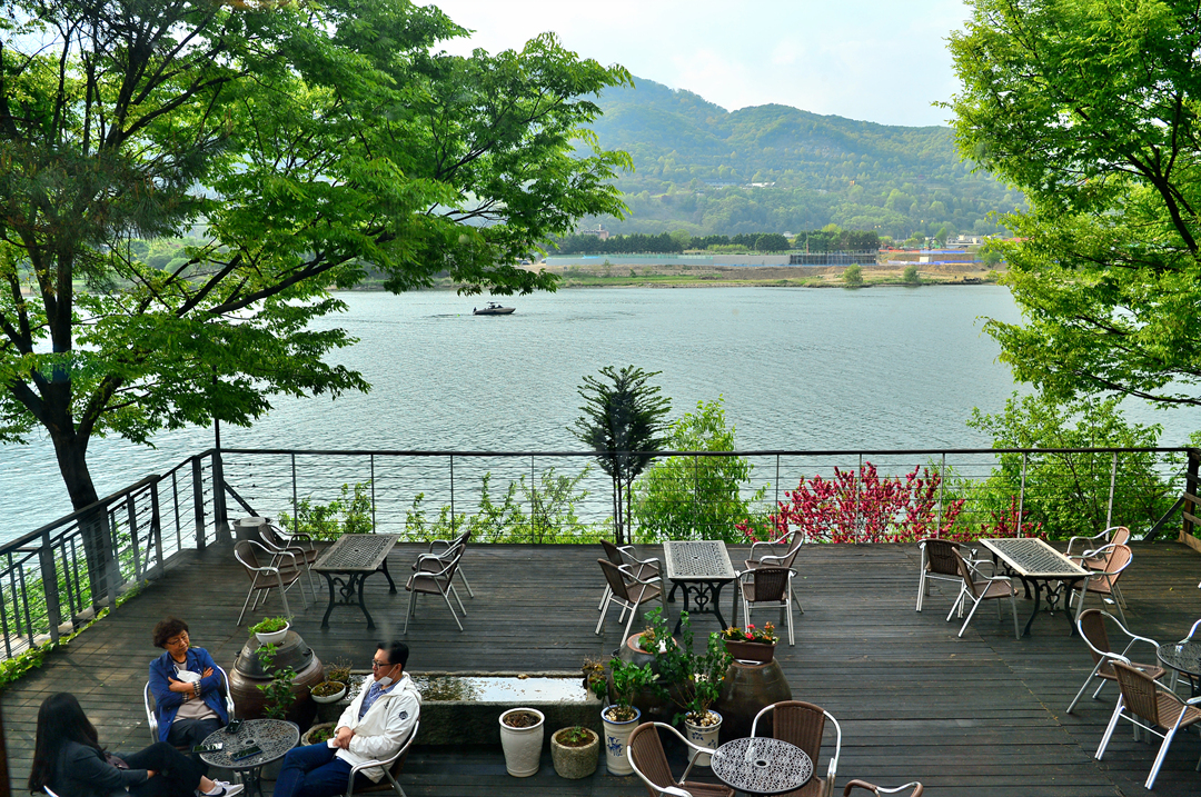 식당 창 너머로는 북한강의 아름다운 풍경이 펼쳐져 있다.