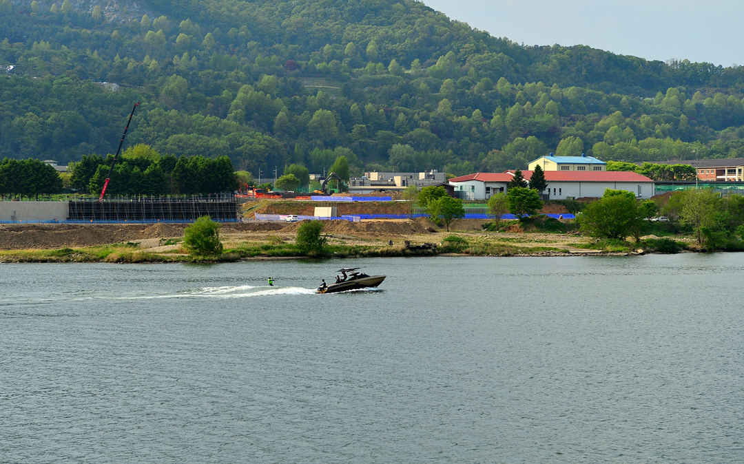 바람을 가르며 수면 위를 멋지게 달리는 수상스키어 모습도 보인다.
