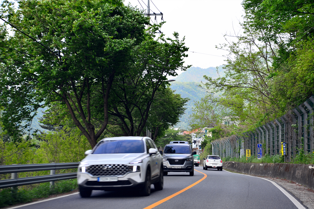 더 스테이로 이어지는 산길에서 이제 국도로 접어드는 모습이다.