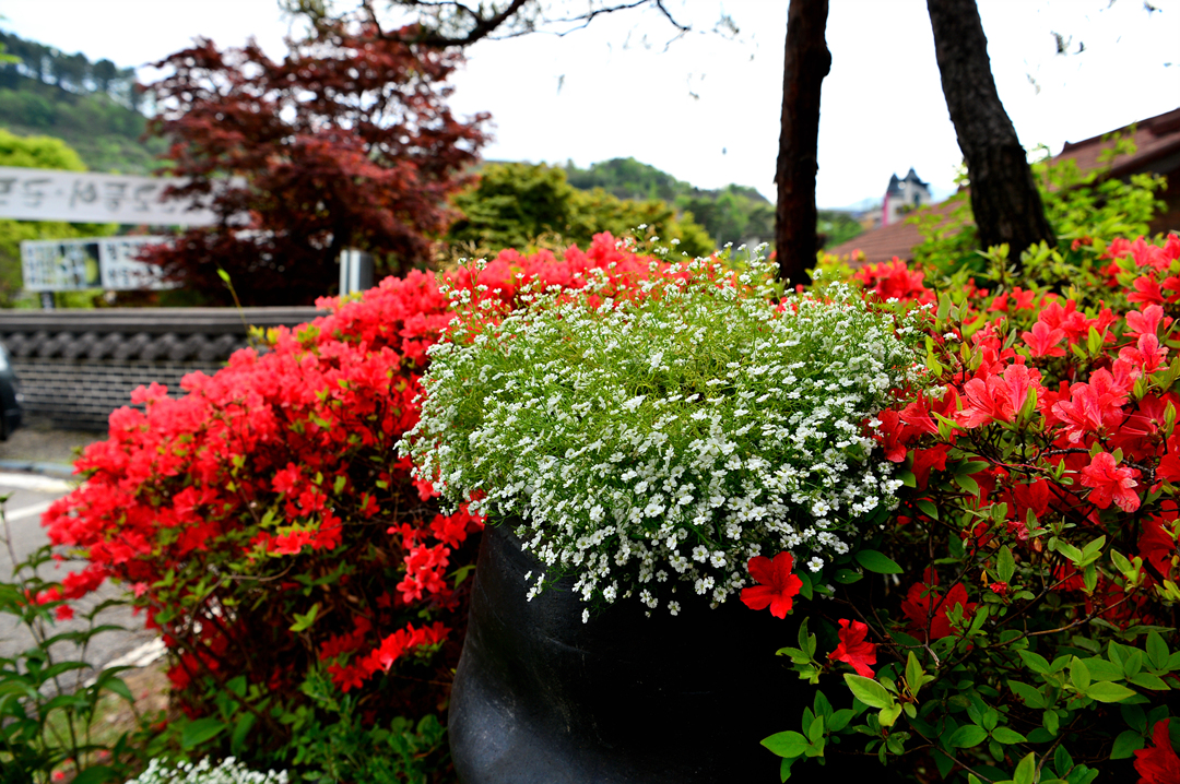 음식점 입구의 화사한 꽃들이 우릴 반긴다.