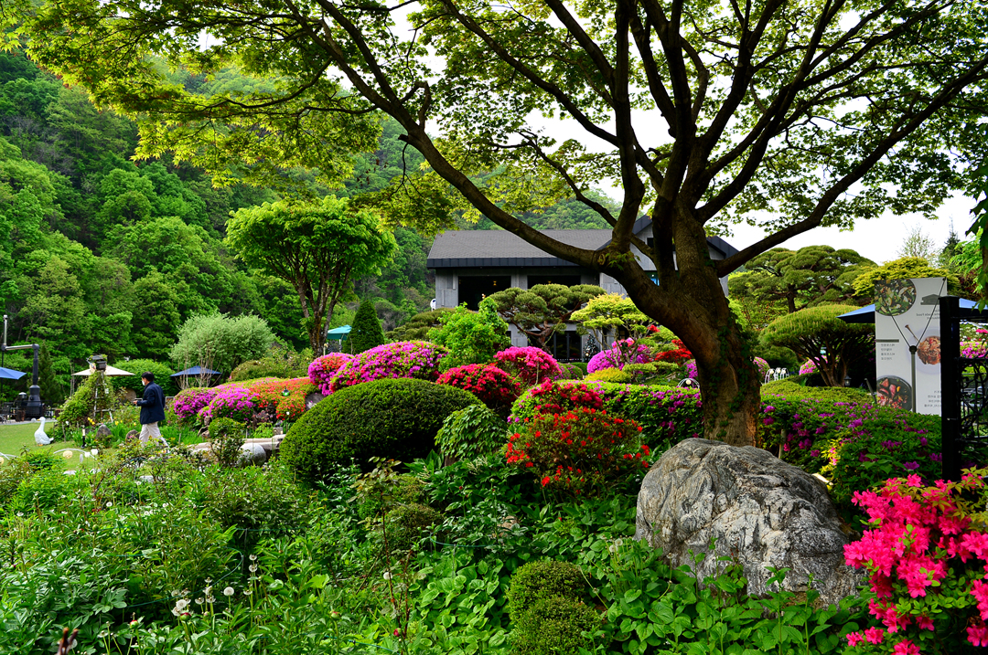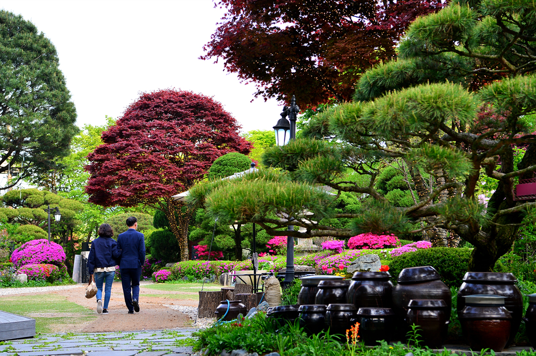 벽계 계곡을 배경으로 한국 고유의 나무, 야생화, 석탑, 돌로 만들어진 조형물 등을 이용해