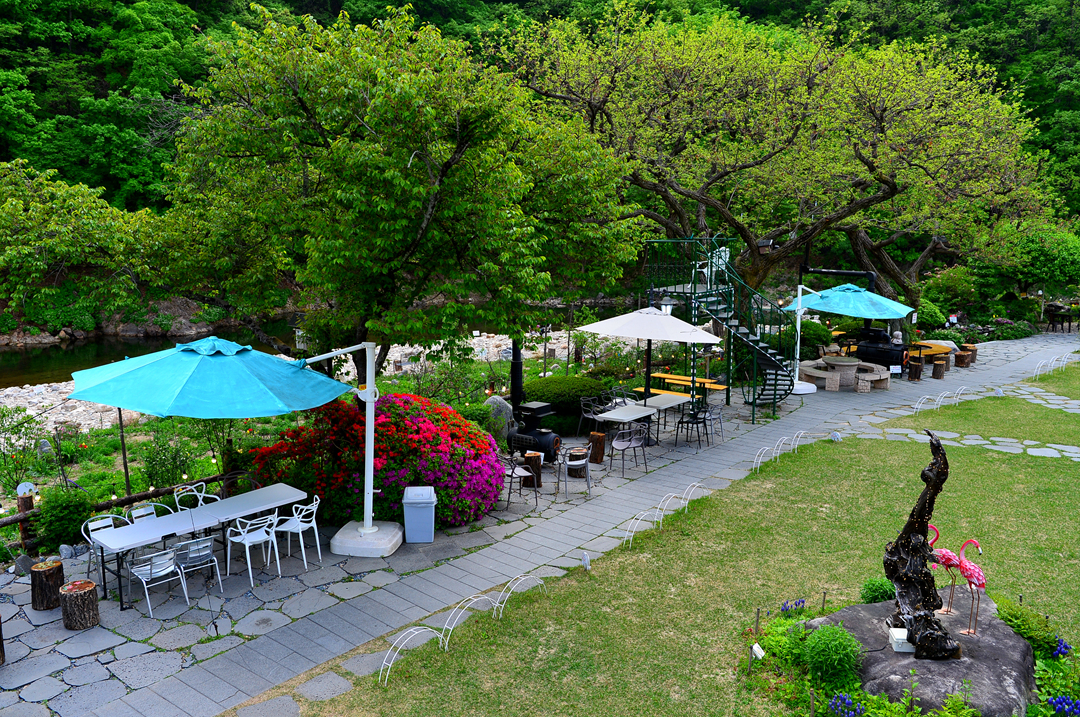 정원에서 바라본 계곡 모습이다.