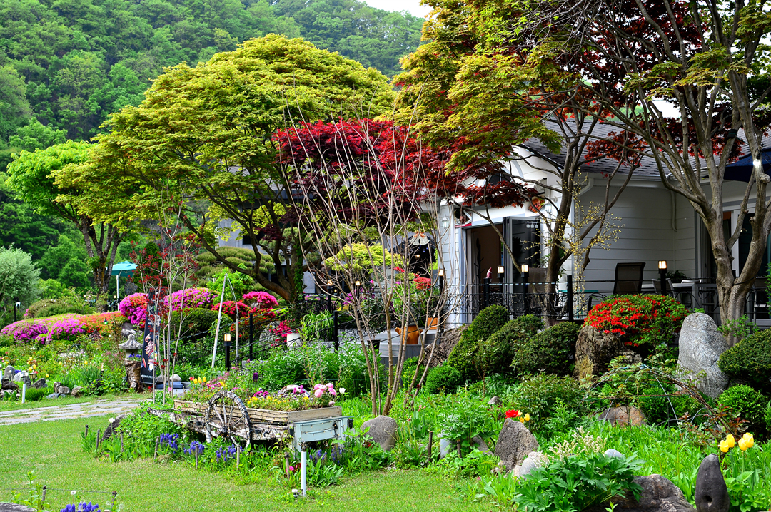 우리나라의 전통적 분위기를 살려 놓았다는 정원 카페로 내추럴 가든을 소개하고 있다.