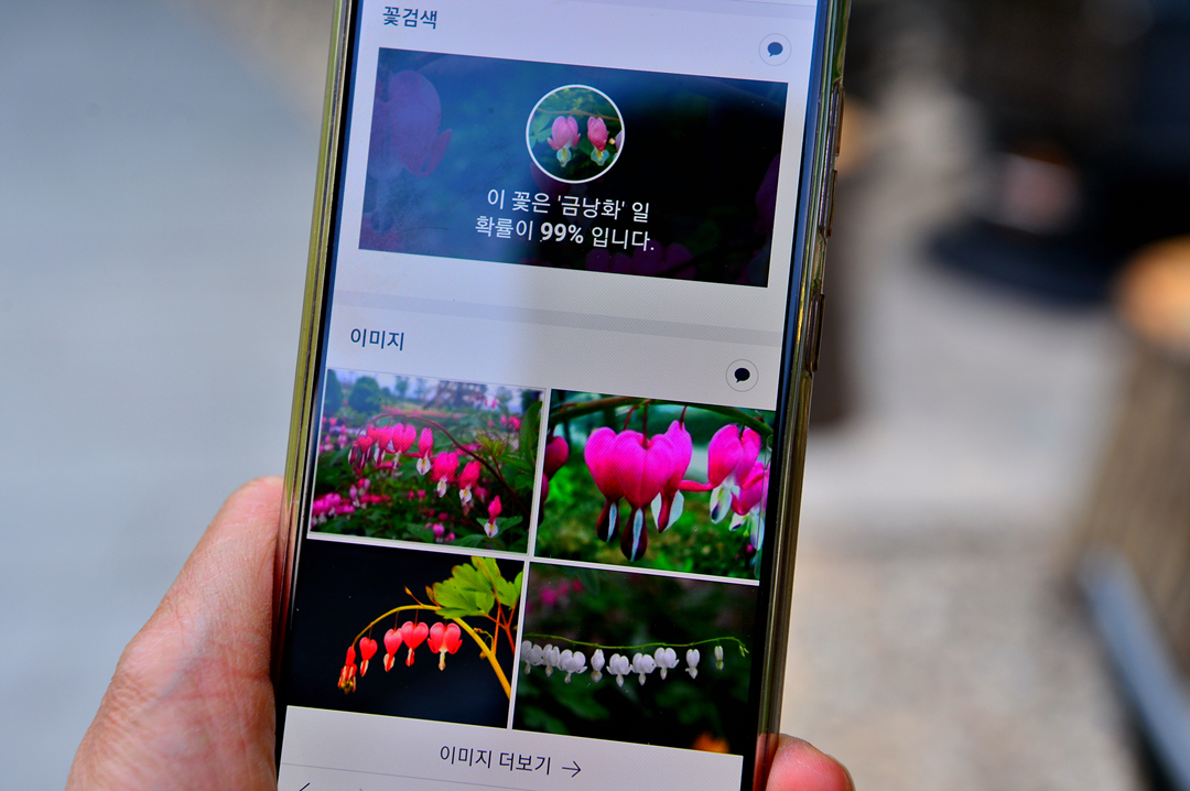 요즘은 폰으로도 가볍게 꽃 이름을 검색해 볼 수가 있단다.