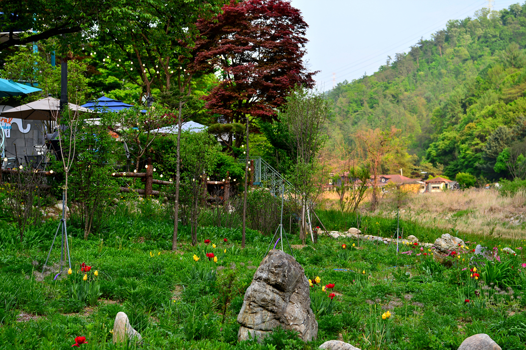 계곡의 뭍에도 각종 꽃들이 만발해 있고,