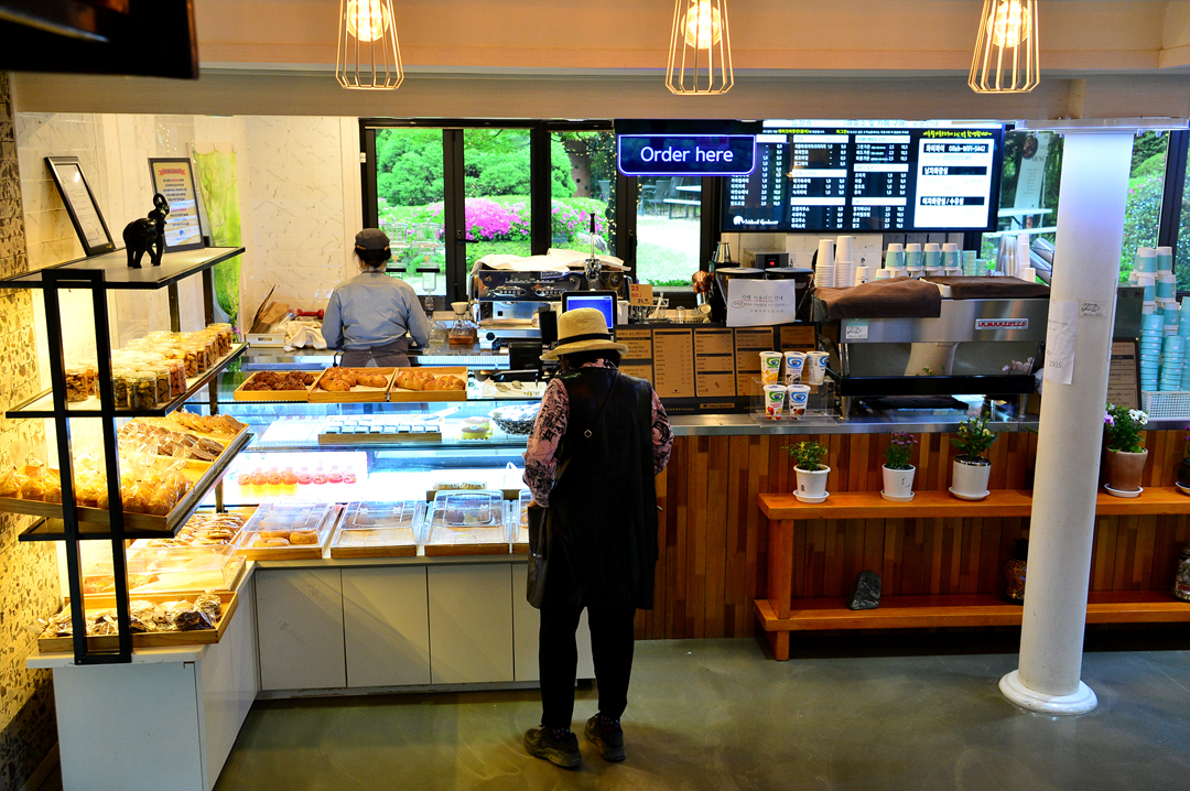 주문을 받고 내어주는 아래층 서비스 공간 모습이다.