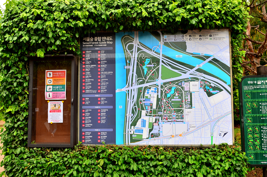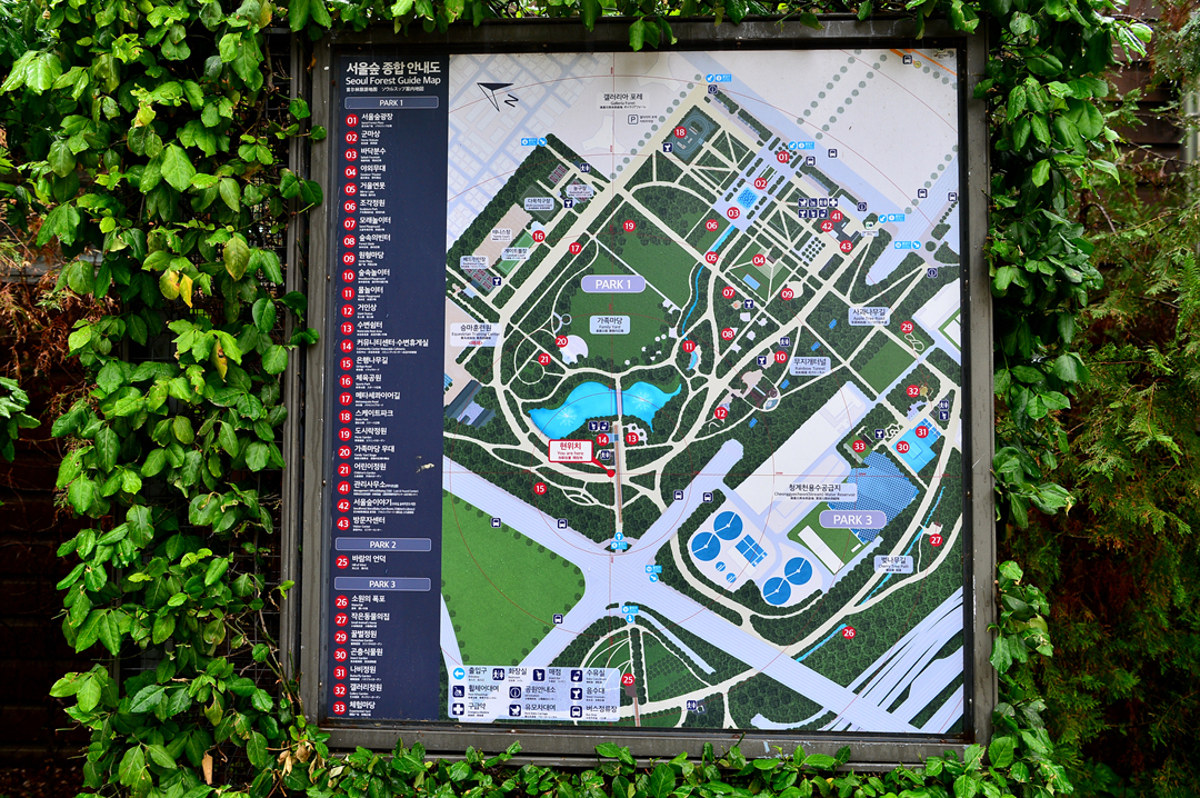 입구에 세워져 있는 서울숲의 종합 안내도 모습이다.
