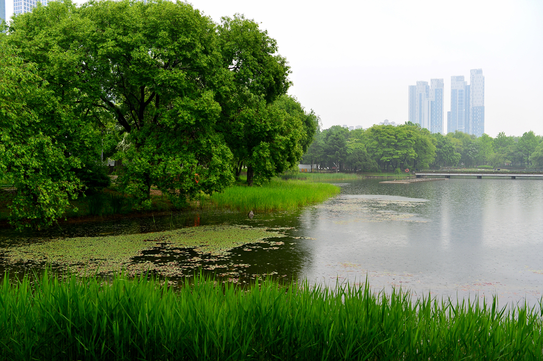서울숲 중앙에 위치한 커다란 호수 모습이다.