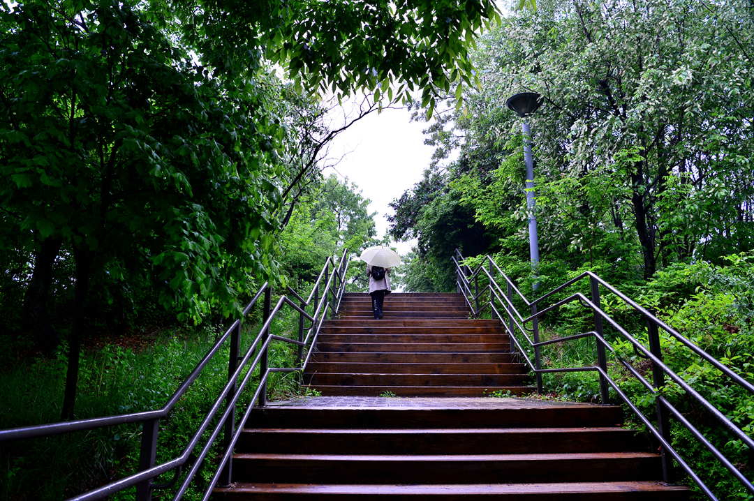 쉼터도 마련되어 있는데 비에 젖어 앉아 쉬기에는 난감한 형태다.