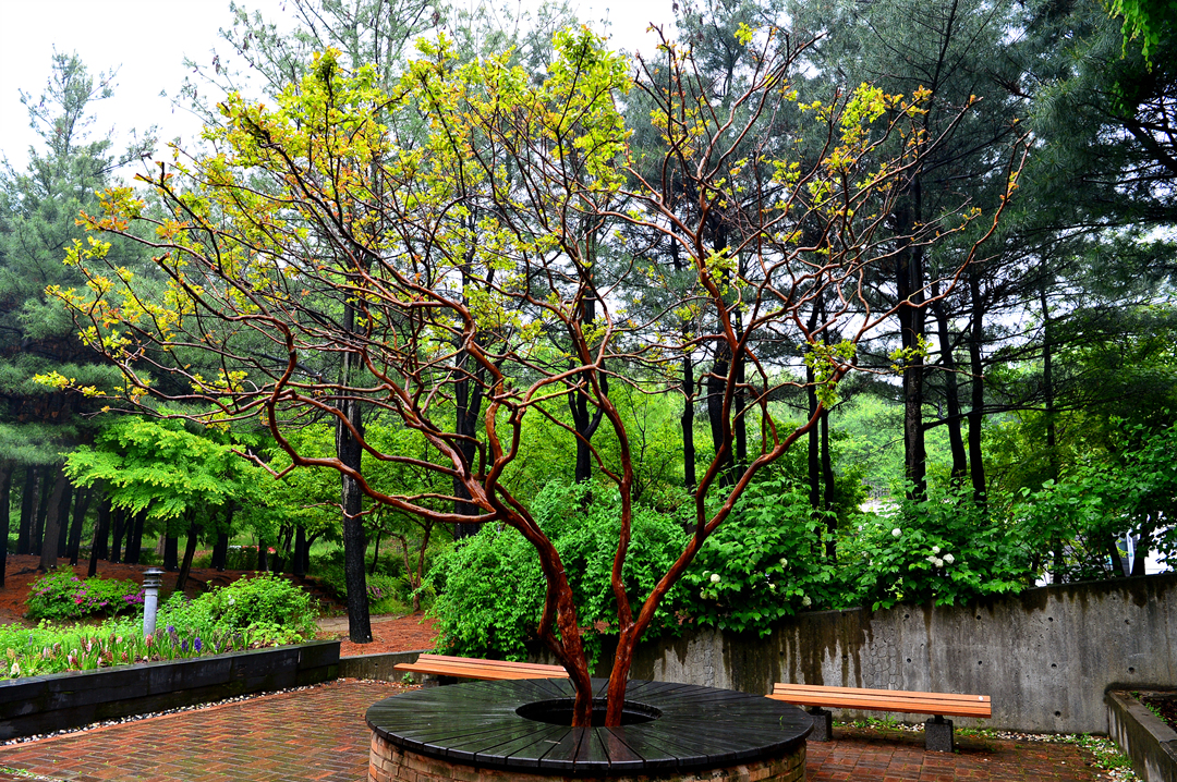 굵은 등걸에서 자라난 작은 가지의 나뭇잎들이 싱그럽다.