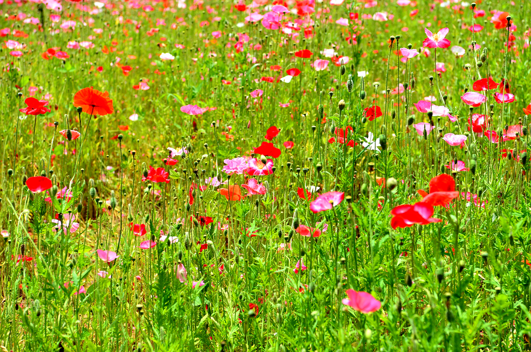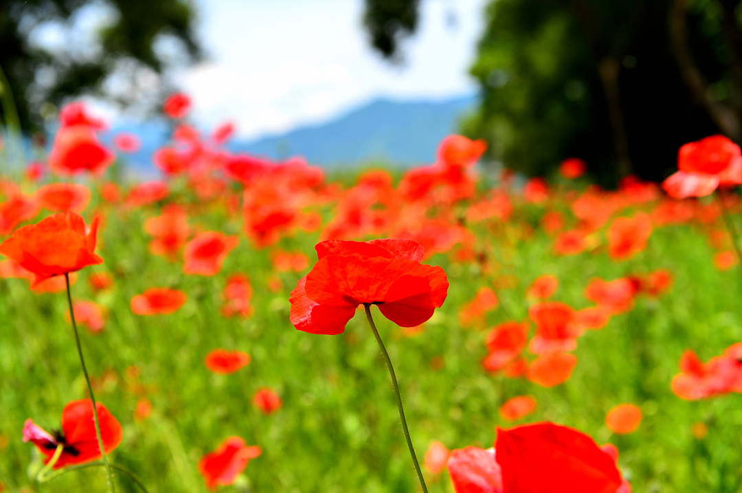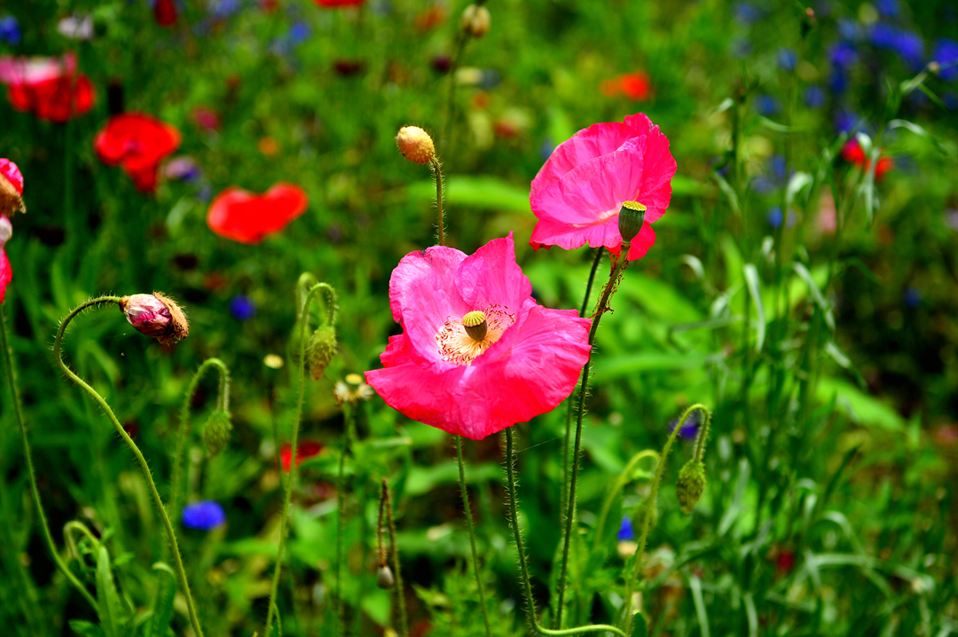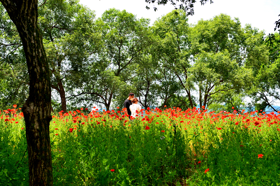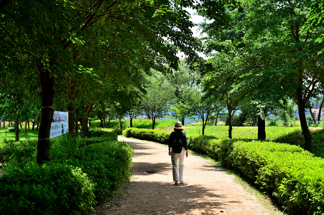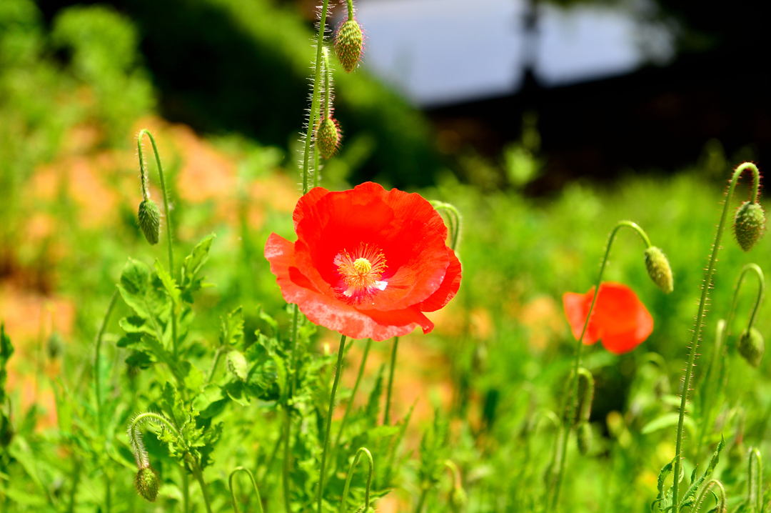 산책로를 따라서 양귀비가 지천으로 피어 있다.