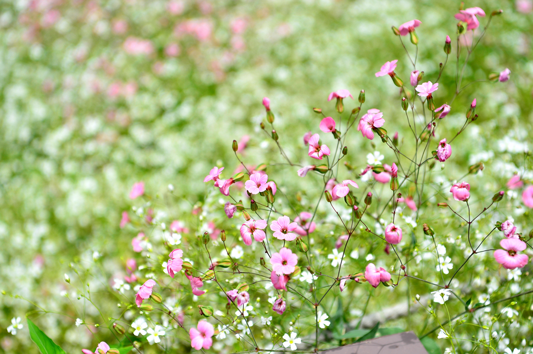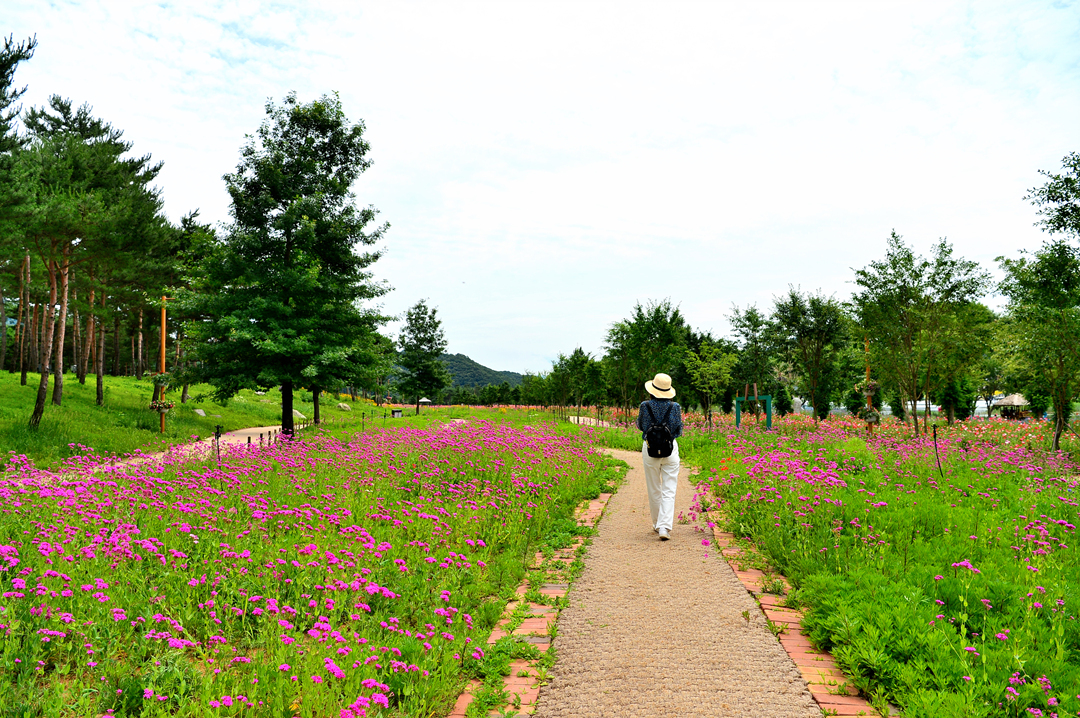 분홍빛 꽃밭 사이로 난 산책길을 따라가 본다.