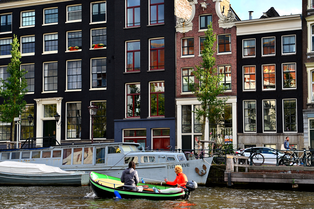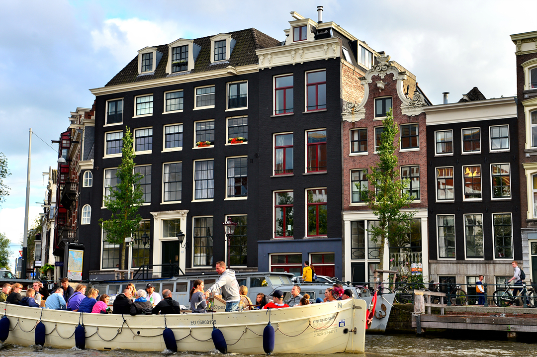 운하 옆으로 펼쳐져 보이는 암스테르담 특유의 박공지붕 건물들이 멋스럽다.