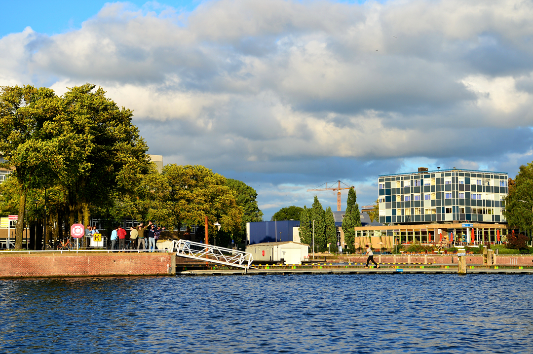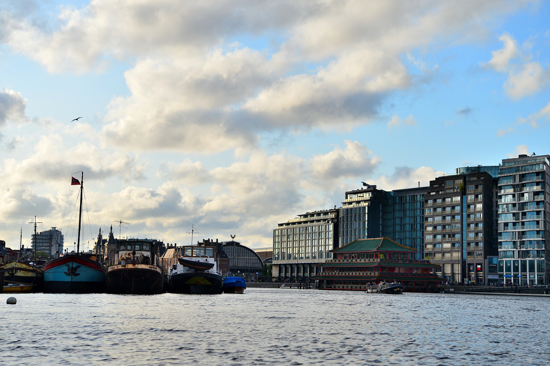 중앙역 북쪽의 에이만이 가까워지자 운하의 폭도 넓어지고, 커다란 배들이 정박되어
