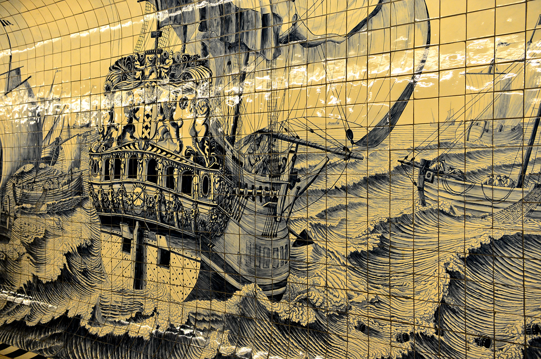 통로 벽에는 전성기 해양시대의 모습을 재현해 놓은 듯한 그림들이 그려져 있다.