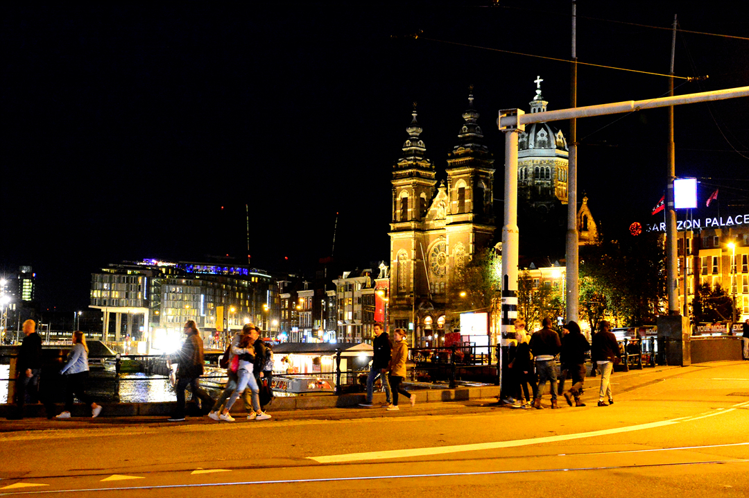 중앙역 앞 거리에서 보이는 교회 Basiliek van de Heilige Nicolaas 방향 모습이다.