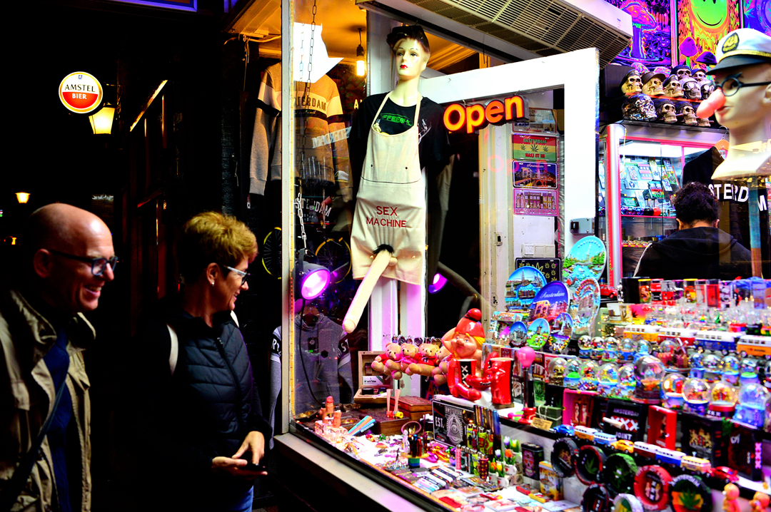 홍등가와 가까운 곳이라 이런 상점들 모습은 흔히 볼 수 있는데, 모두들 유쾌한 모습으로 구경한다.