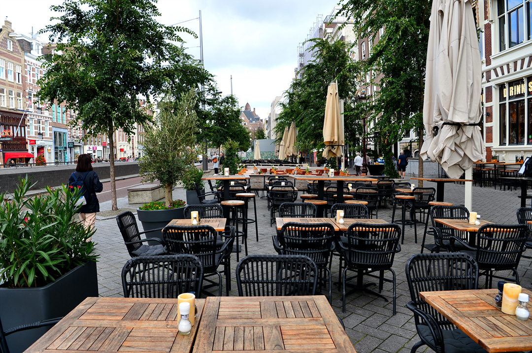 오전 시간이어선지 카페들의 야외 테이블은 텅 비어 있다.