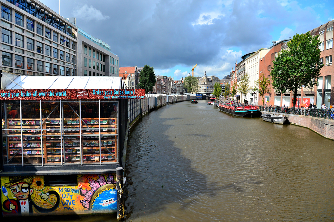 싱겔 운하 위에 시설된 싱겔 꽃 시장의 운하 쪽 모습인데,